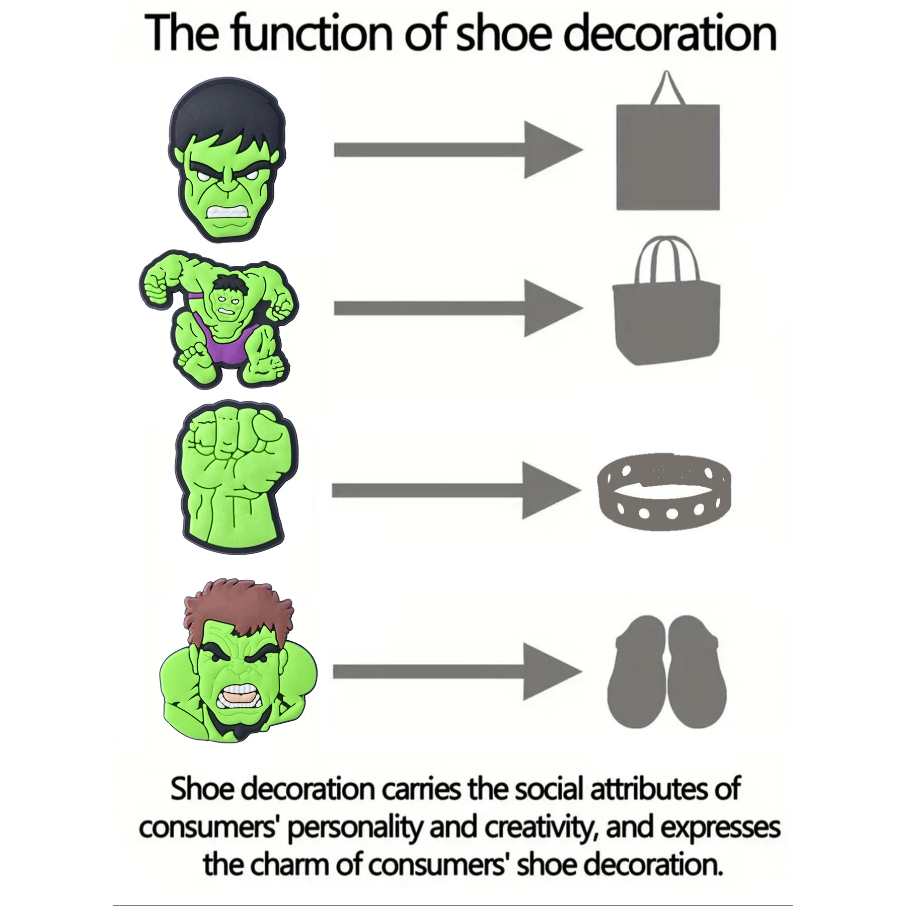 These charming Hulk figures can be easily attached to classic clogs or wristbands, adding a touch of Marvel flair to any outfit.