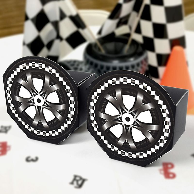 9x4x7cm Black and White Tire Gift Box Race Car Theme Party Candy Packaging Box Kids Boys Happy Racing Birthday Party Decor