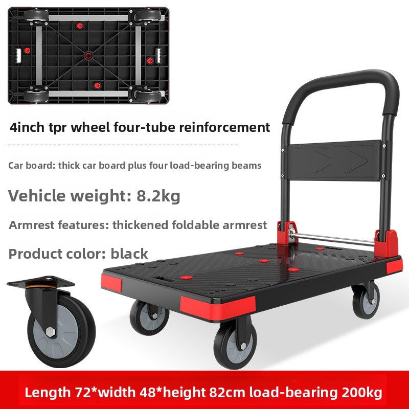 A car pulling cargo trolley moving cart four-wheel flatbed silent foldable trailer