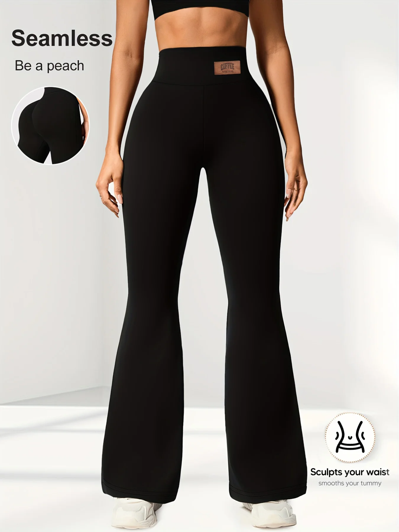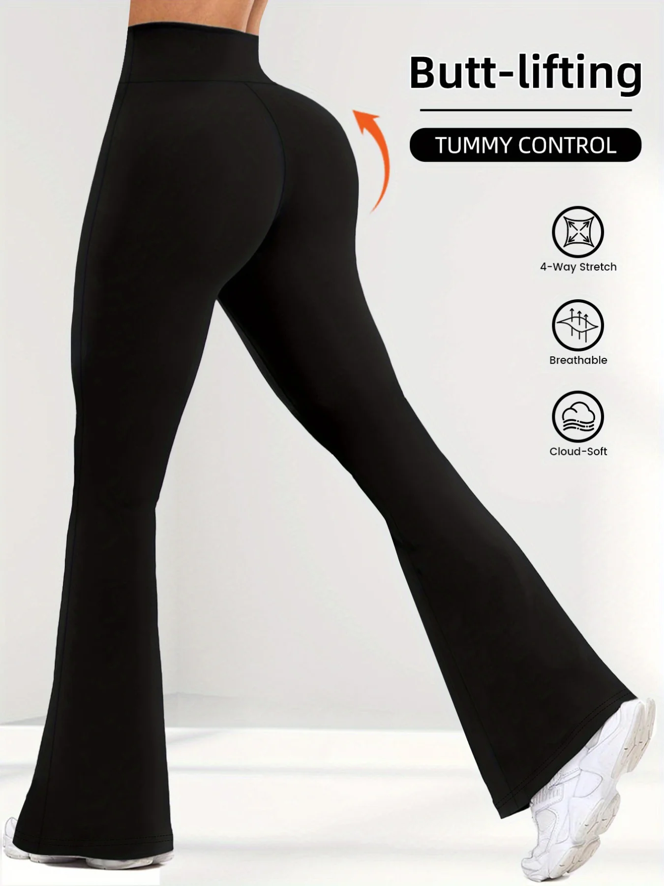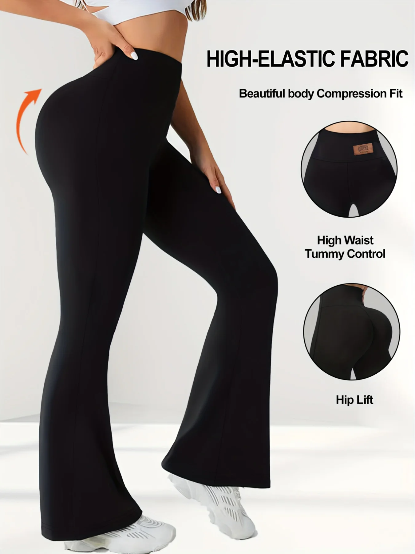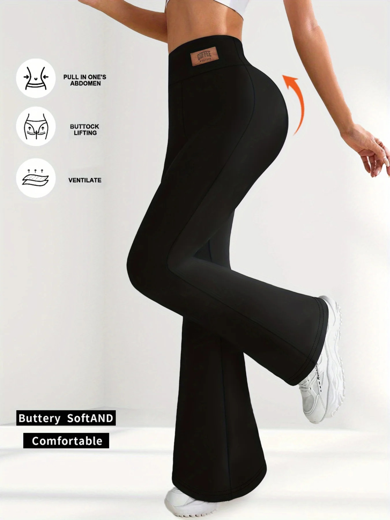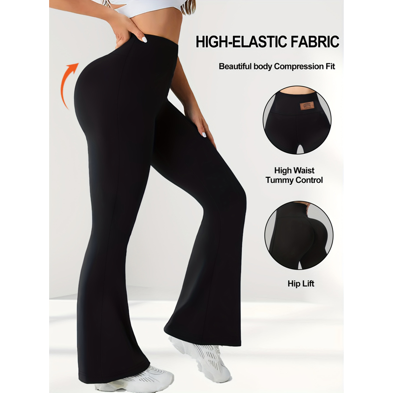 A Spring Women's Black Casual Pants With A Slightly Flared Design And High Waist Elasticity, Suitable For Casual Sports And Yoga