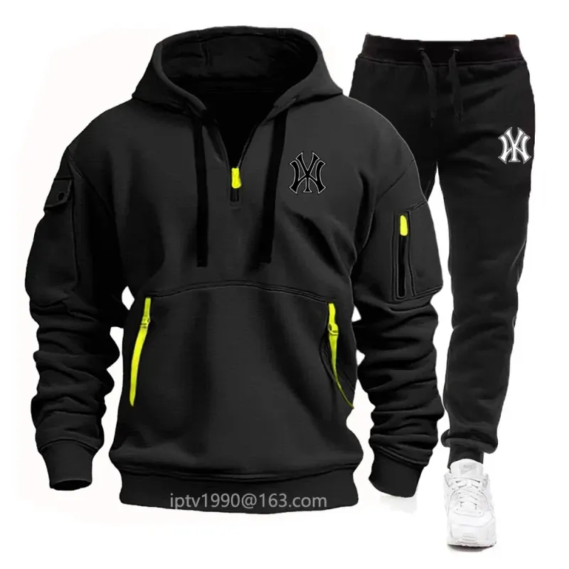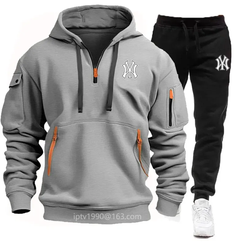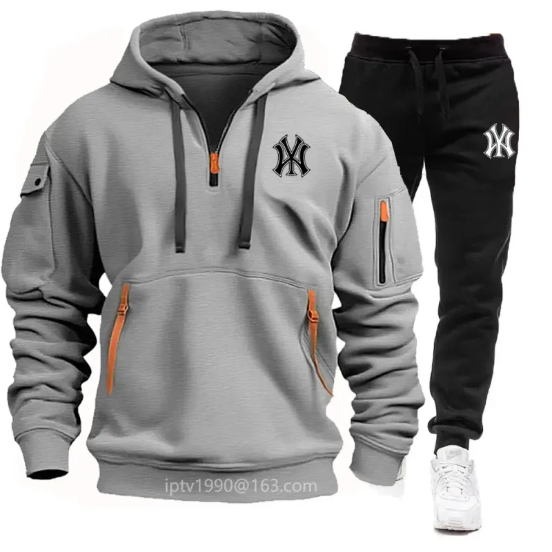 A stylish, casual and fitness two-piece set for men's autumn and winter 2025: zipper hoodie, long-sleeved pullovers and jogging