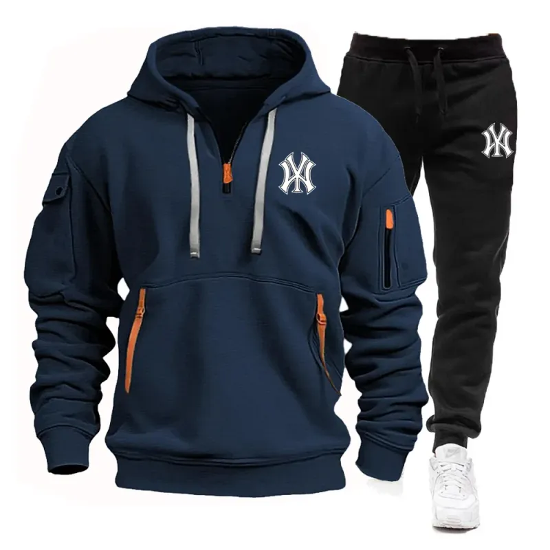 A stylish, casual and fitness two-piece set for men's autumn and winter 2025: zipper hoodie, long-sleeved pullovers and jogging