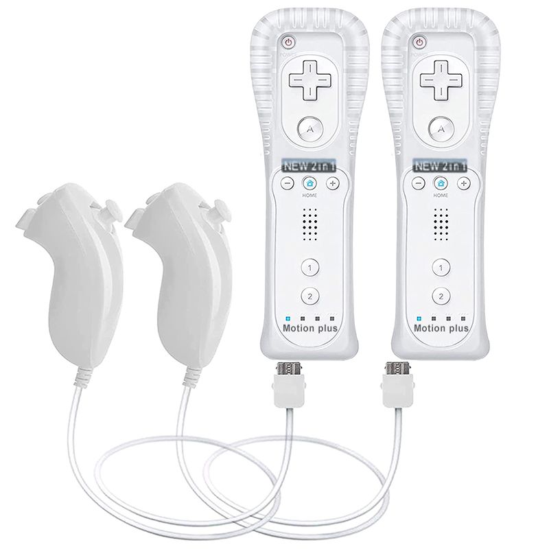 2PCS Remote Controller with Nunchuck Controller for Wii Console Wireless Gamepad with Motion Plus for Wii Games Control