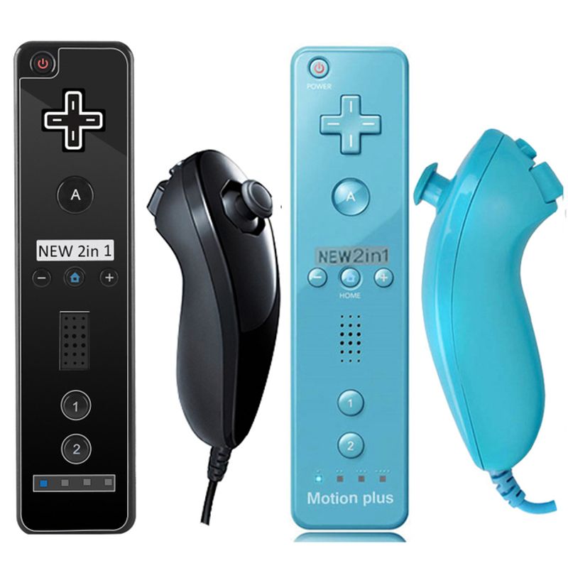 2PCS Remote Controller with Nunchuck Controller for Wii Console Wireless Gamepad with Motion Plus for Wii Games Control