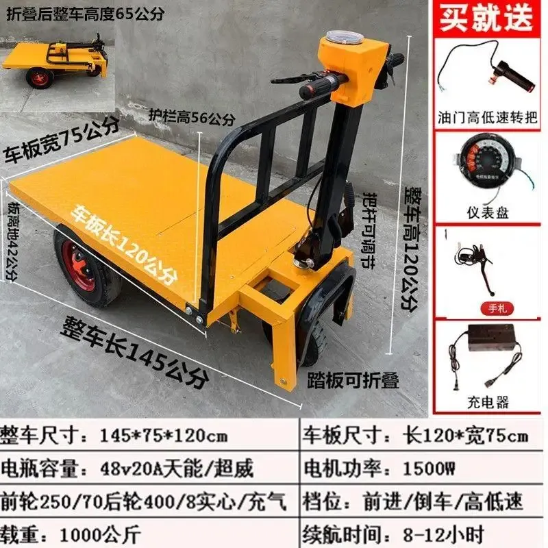 A1 electric flatbed truck, portable folding small four-wheel trolley decoration, can enter the elevator warehouse to transport