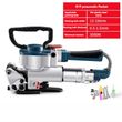 ① Hold the handle and tensioner with your right hand and insert the upper and lower parts of the binding tape into the packaging machine at the same time (the overlapping part needs to be separated by the blades of the cutting tool holder).