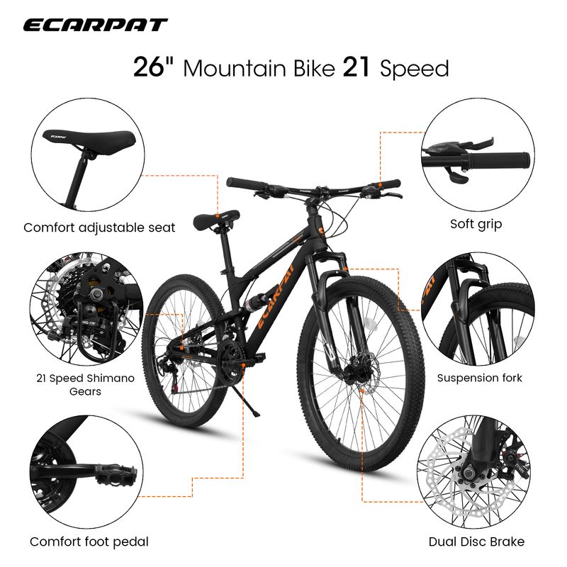 【21-speed drivetrain】The manual dial is used to quickly and accurately shift gears, and it can be operated freely even on bumpy road sections.