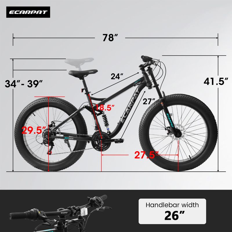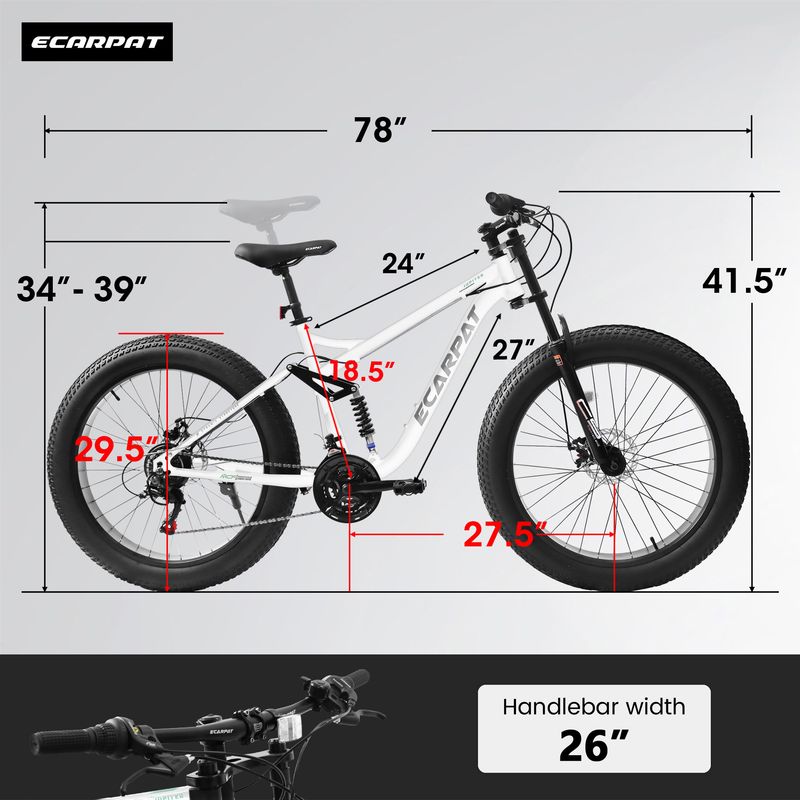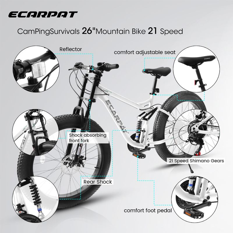【4 INCH FAT TIRE】Width up to 4 inches, 5 times more wear resistance than ordinary bicycle tires. Strong grip and anti-skid, fully able to challenge any terrain, conquer any off-road trails and urban roads.