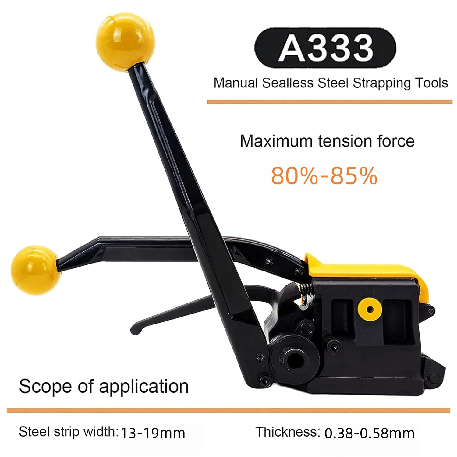 ☀ 【Packing Width】:The A333 metal strapping tool is suitable for 1/2''(13mm) 5/8''(16mm) 3/4''(19mm). Machine usually come with 3/4'' (19mm) strap setting. If you need to pack different widths, please replace the gasket firstly.