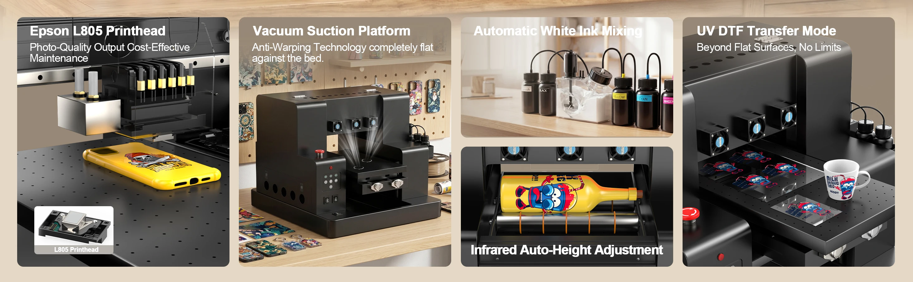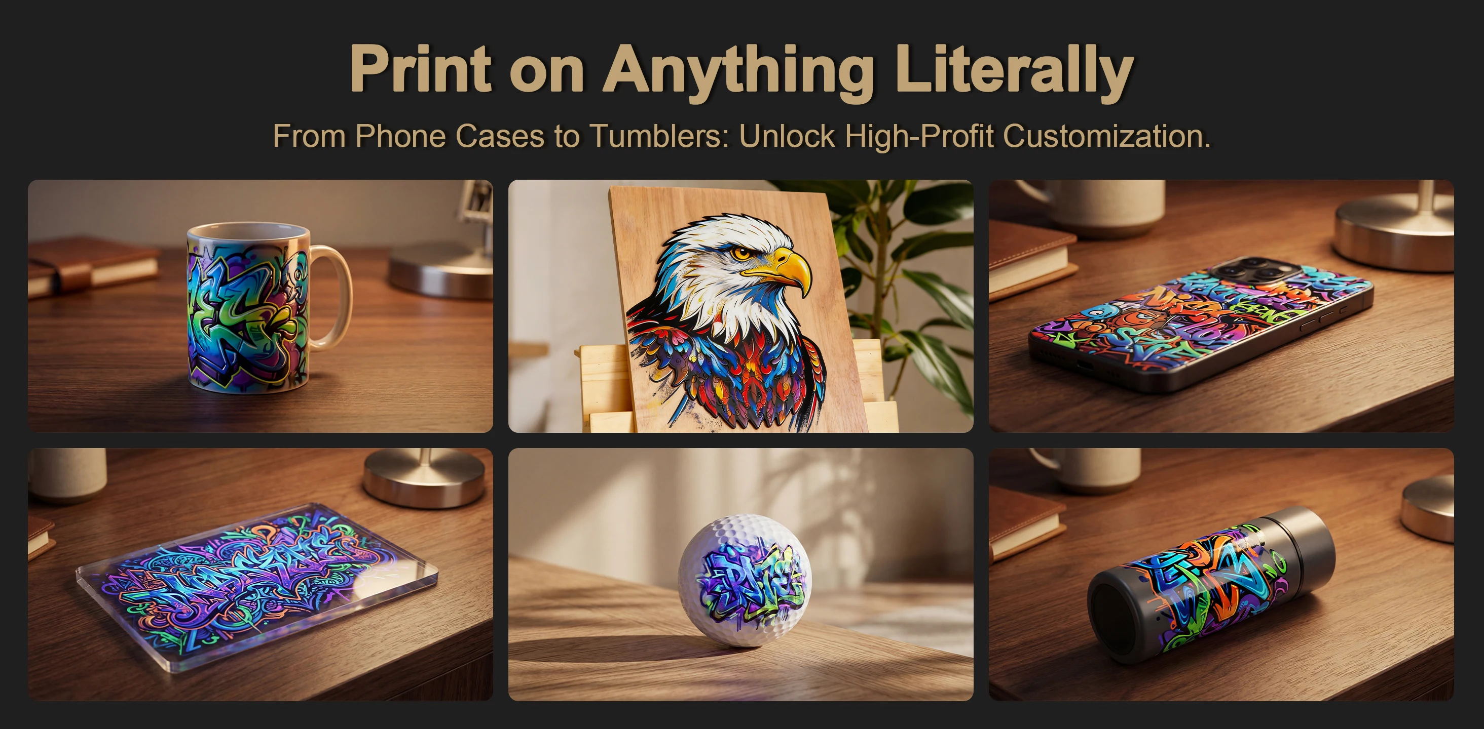 Whether you're a brand-new designer or a custom-printing expert, A1630/3250 UV lets you launch your on-demand printing business with just a few clicks.