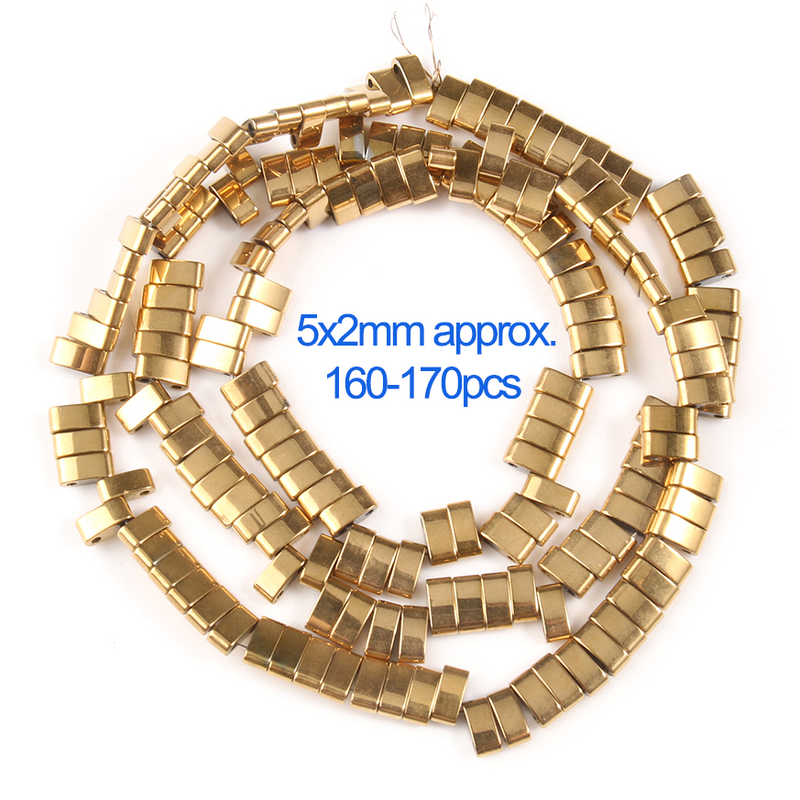Name:Genuine Gold Plating Hematite Beads Natural Stone Flat Round Cube Spacer