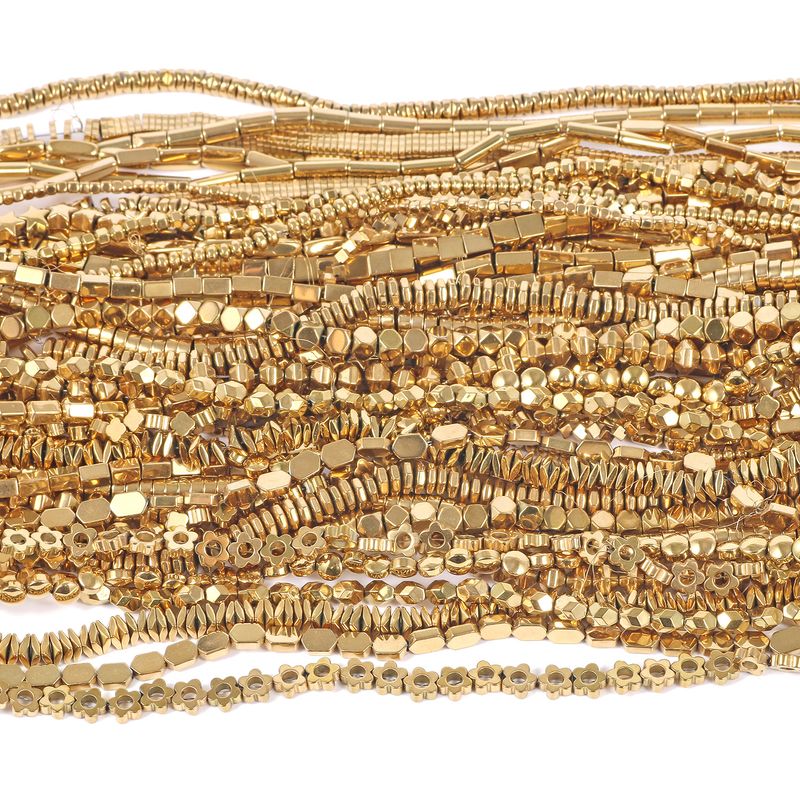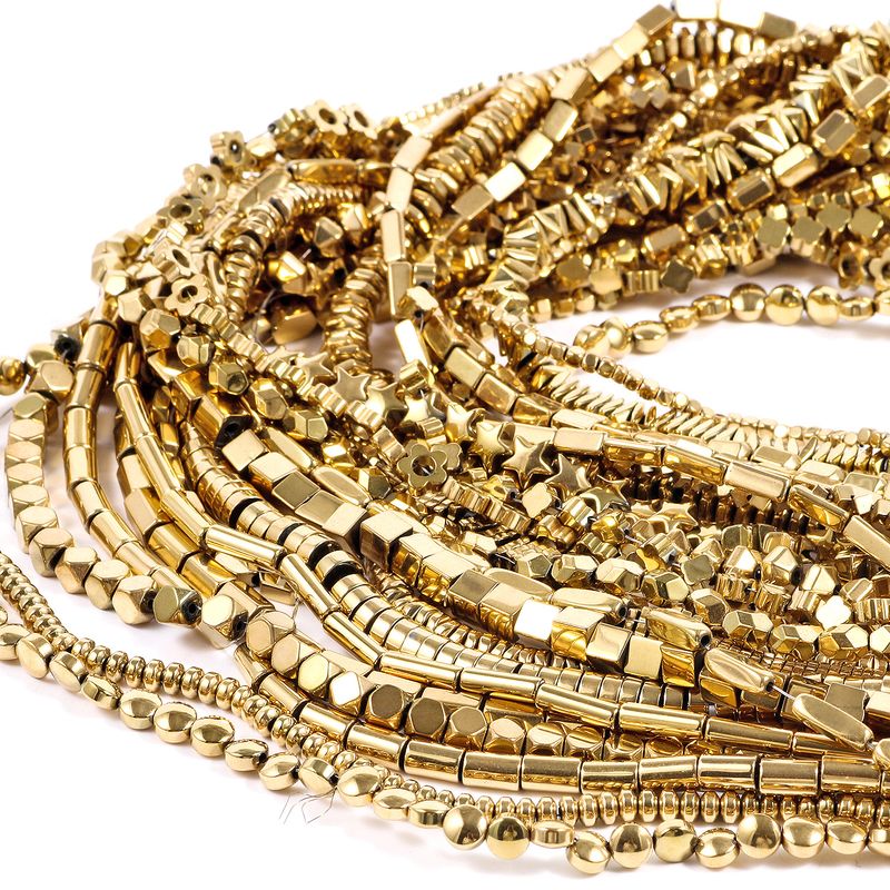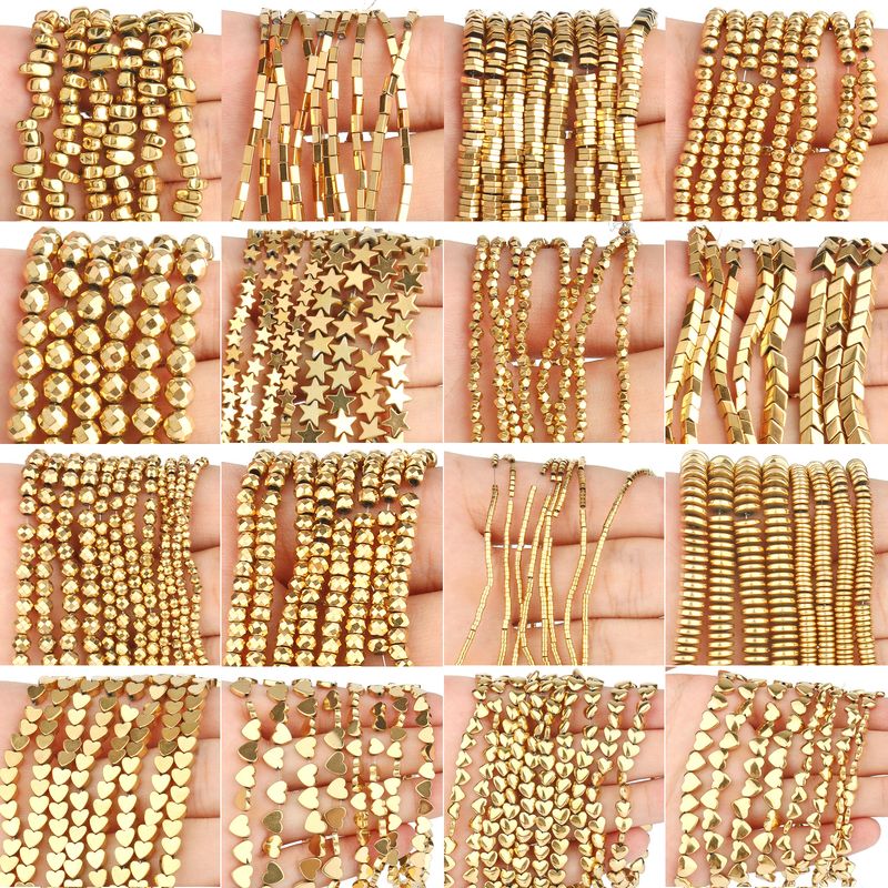 Name: AAA Gold Plated Geometric Hematite Beads Charms Heart Tube Gasket Cube Shape Beads For Jewelry Making Handmade Crafts Findings