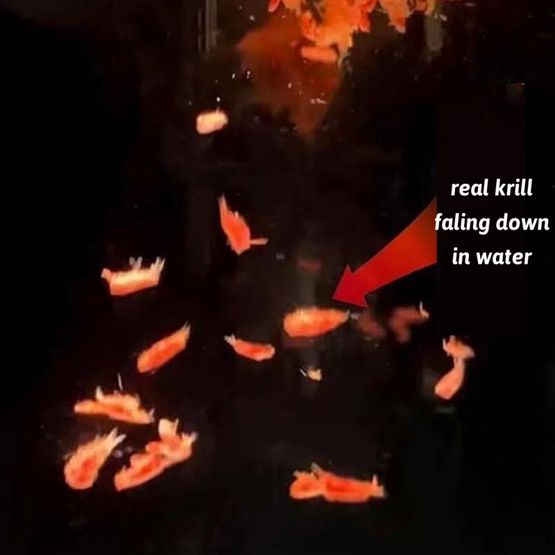 Real krill faling down in water