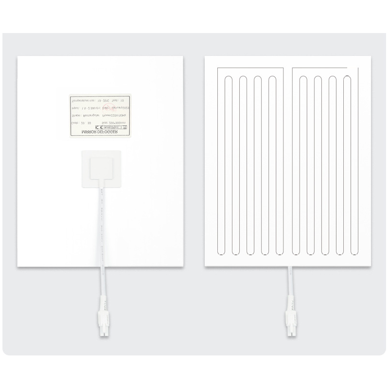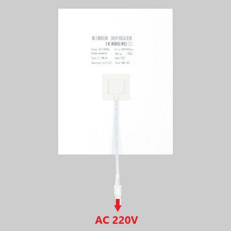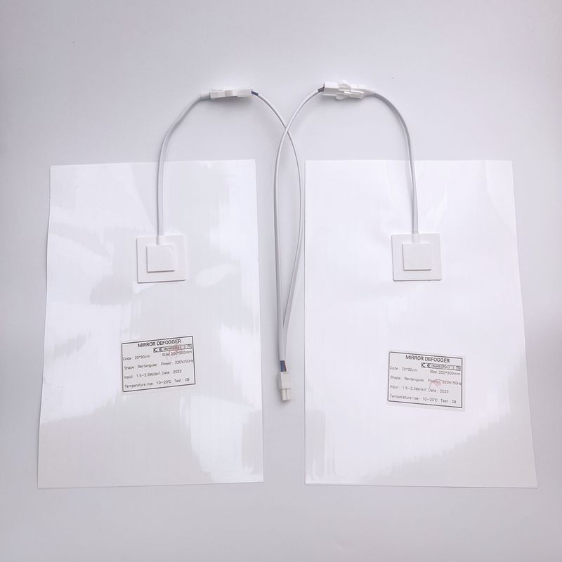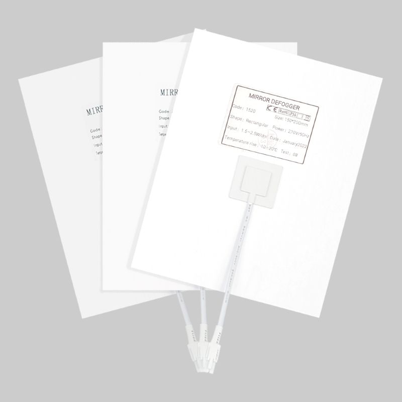 Mirror defoggers are adhesive heating pads when installing onto the back of the mirror. They provide heat energy, which transfers directly to the mirror, resulting in a warming of the mirror surface. This gets rid of the mist. The specific power can keep mirror warm at a comfortable temperature, and it can effectively prevent water vapor condensing on the mirror surface, and the mirror is fog free.