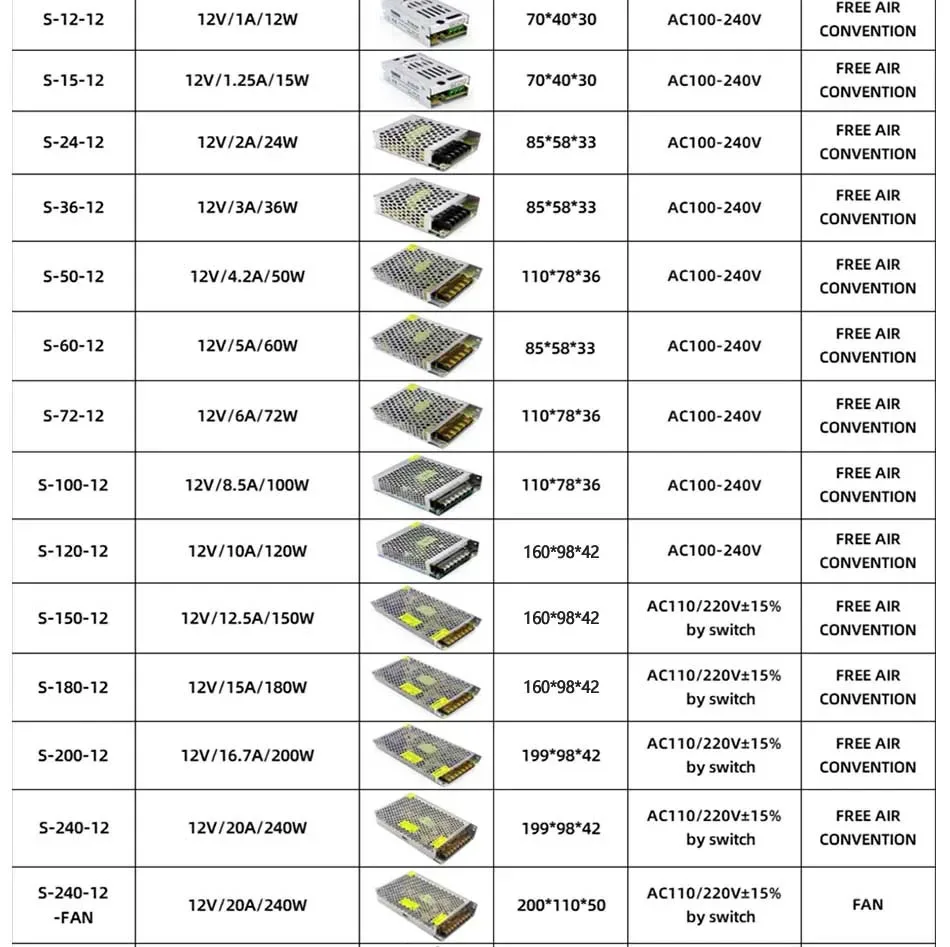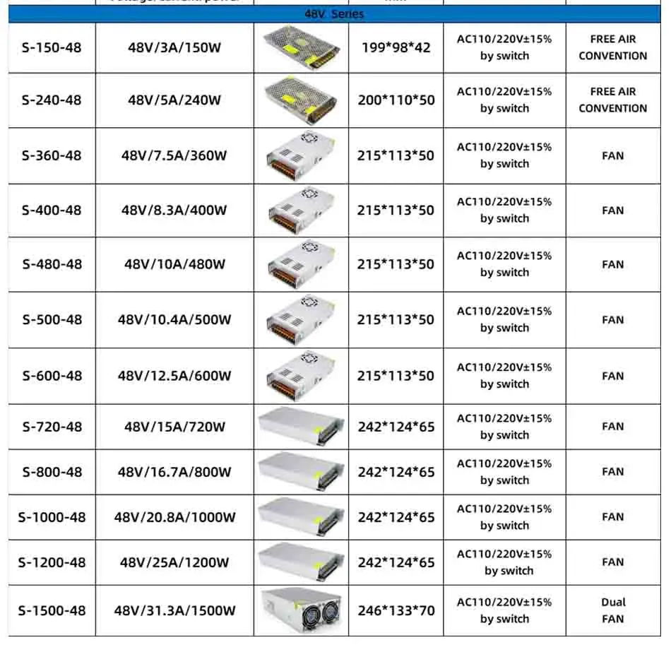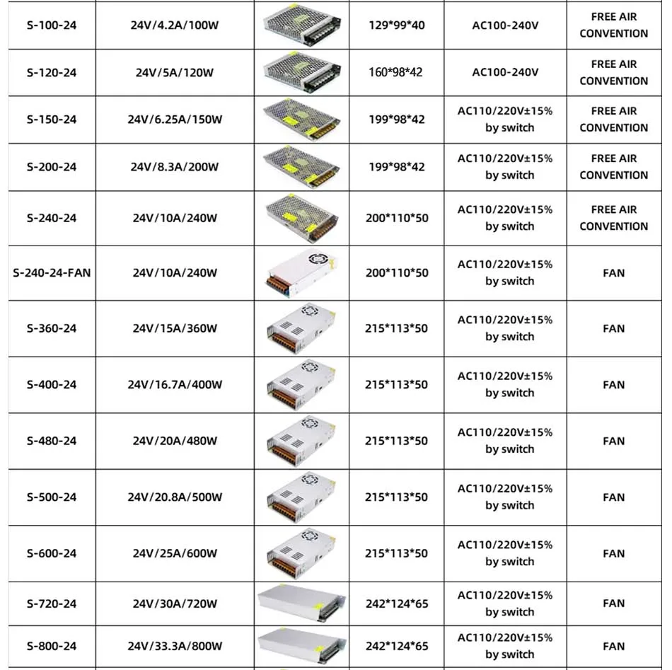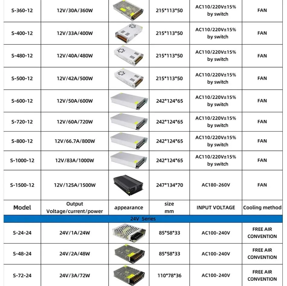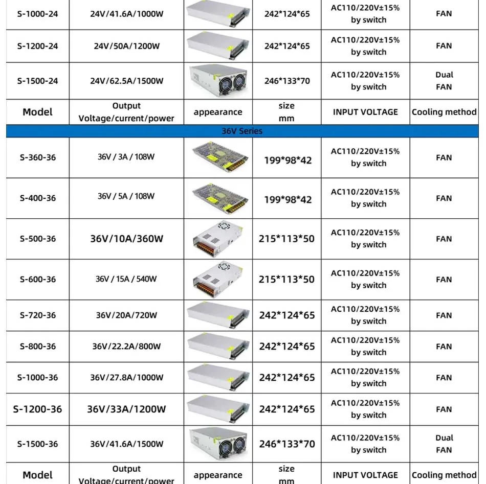 AC DC 5V 12V 24V 36V Power Supply 15V 18V 24V 36V Fonte 400W 500W 600W Transformers 220V To 5 12 24 V Power Supply SMPS