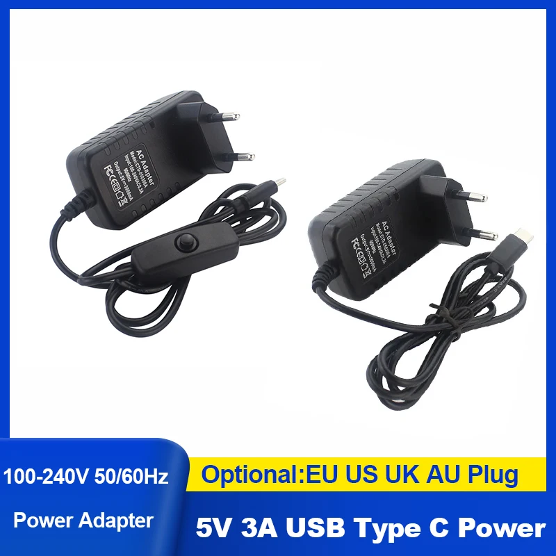 AC Power Supply 5V 3A USB Type C Switch Power Adapter EU US UK AU Plug Input 100-240VPower Adapter for Orange Pi 3 4 LTS Pi 4B