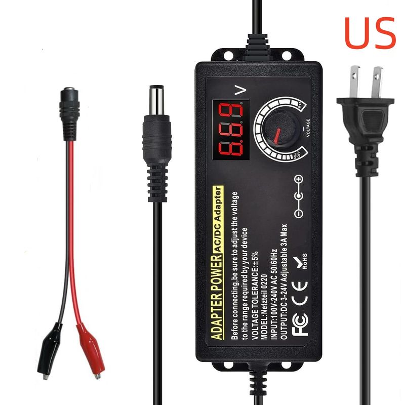 AC to DC Power Supply Adjustable Laboratory Supply Power Source 3V-24V-3A Portable Universal Adapter EU/US Plug Alligator Clip