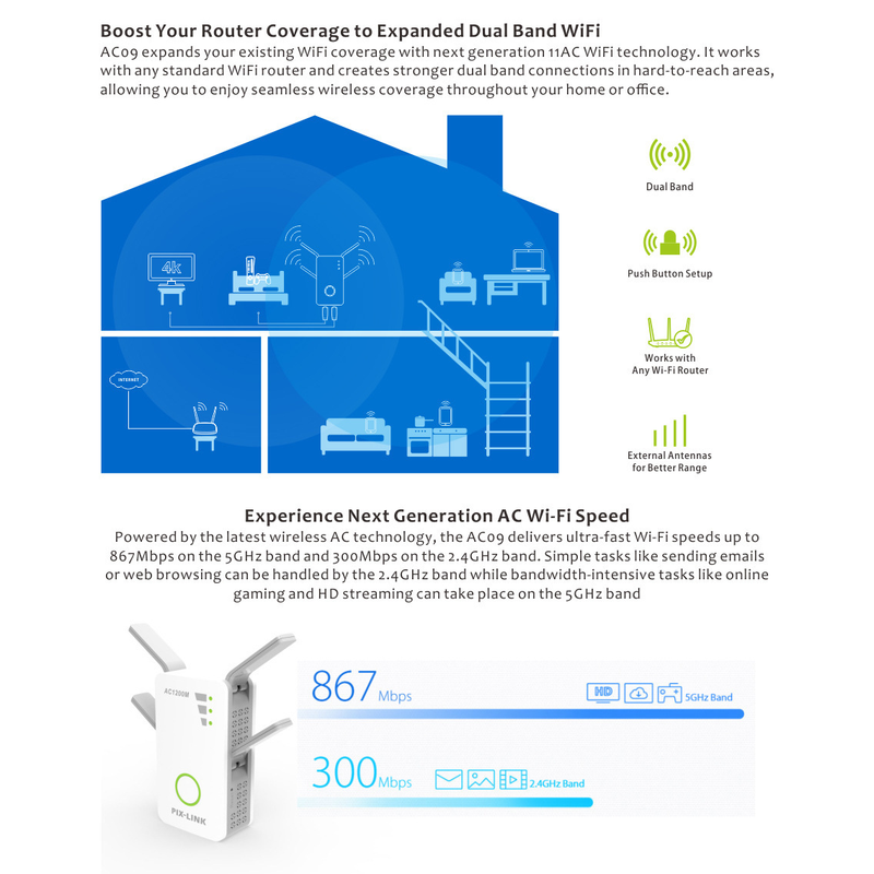 Wireless Range Extension (Repeater)-Extend the WiFi coverage of existing wireless networks