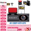 ACCEO Dash Cam WIFI GPS Mini CAR DVR Front 4K And Rear 1080P Dual Lens Black Box Room Camera Night Vision 24H Parking Monitor