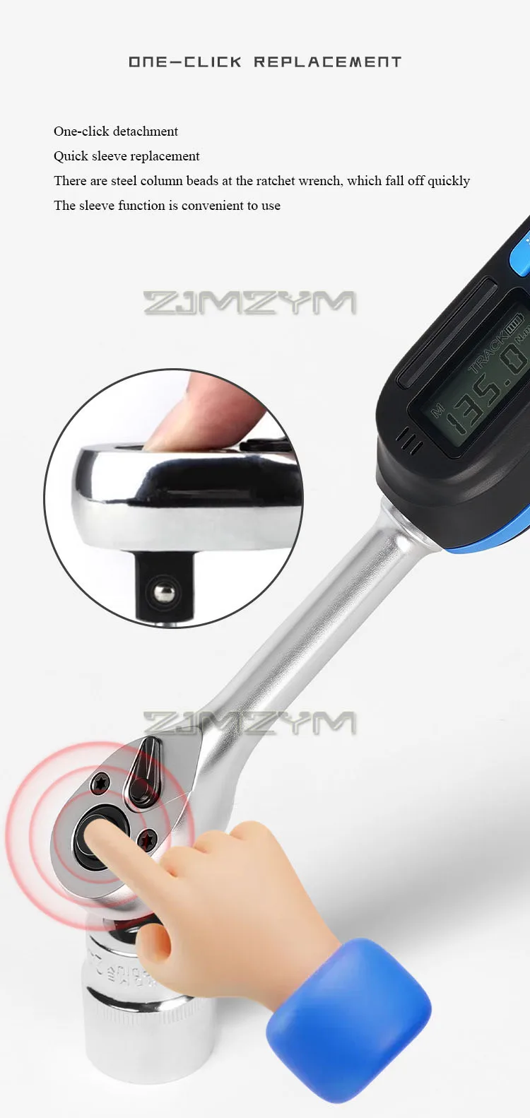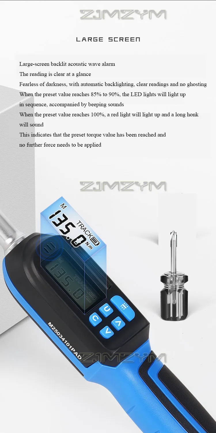 Accurate to ±2% Digital Torque Wrench 6.8-135N.m Electronic Preset Torque Ratchet Wrench With Buzzer LED Flash Notification