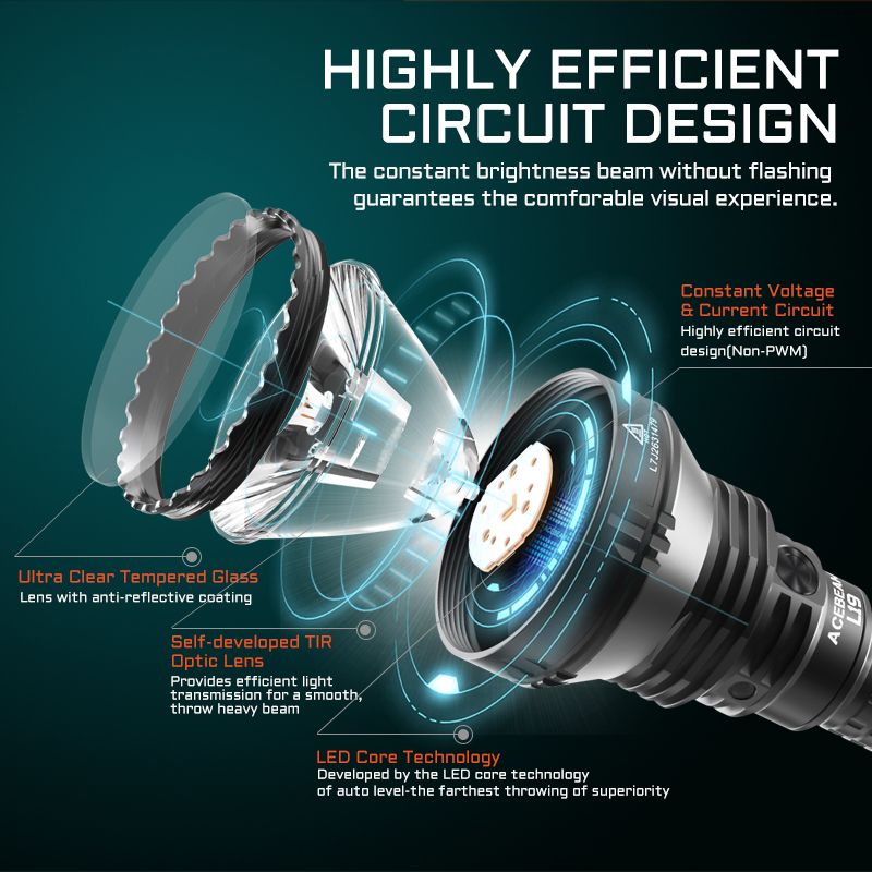 ✅ Utilizes the self-developed 55 mm TIR Lens (Total Internal Reflection)to form the excellent beam pattern.
