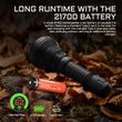 Acebeam L19 is a long-range hunting flashlight that can throw a maximum of 2200 lumens 1520m—that’s over half of a mile! Use a TIR lens. The head diameter of the lens is 55mm, which is the hunting flashlight with the longest-throw distance in the same head diameter. The Acebeam L19 will be your new go-to hunting flashlight, and you can’t beat the long-distance capabilities. Extend runtimes when using the included 21700 li-ion battery and know its status with the battery level indicator. IP68-rated waterproof and dustproof rounds out the features of this spotlight built for those needing a small, tough flashlight with an incredibly far beam distance.