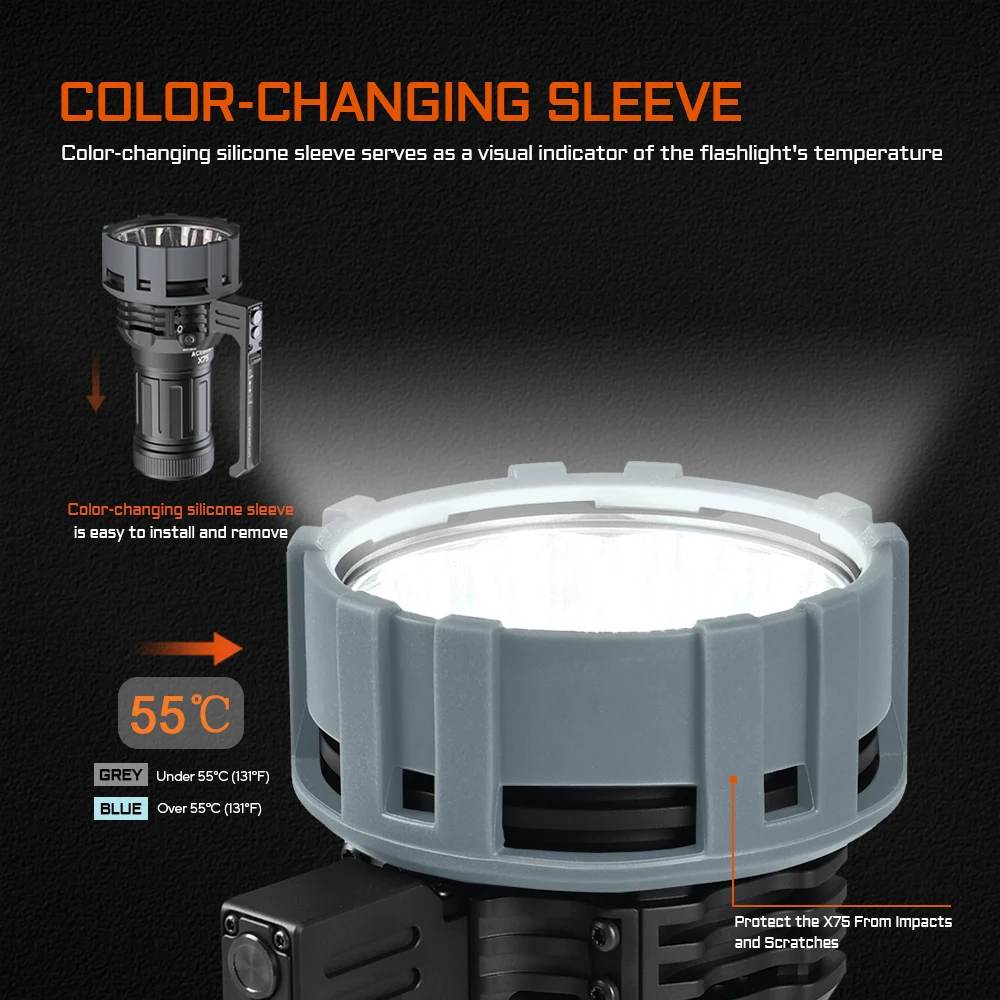 High: 23000 ~ 12000 ~ 900 lumens; 96721cd; 622 meters; 3 minutes + 40 minutes + 8 minutes