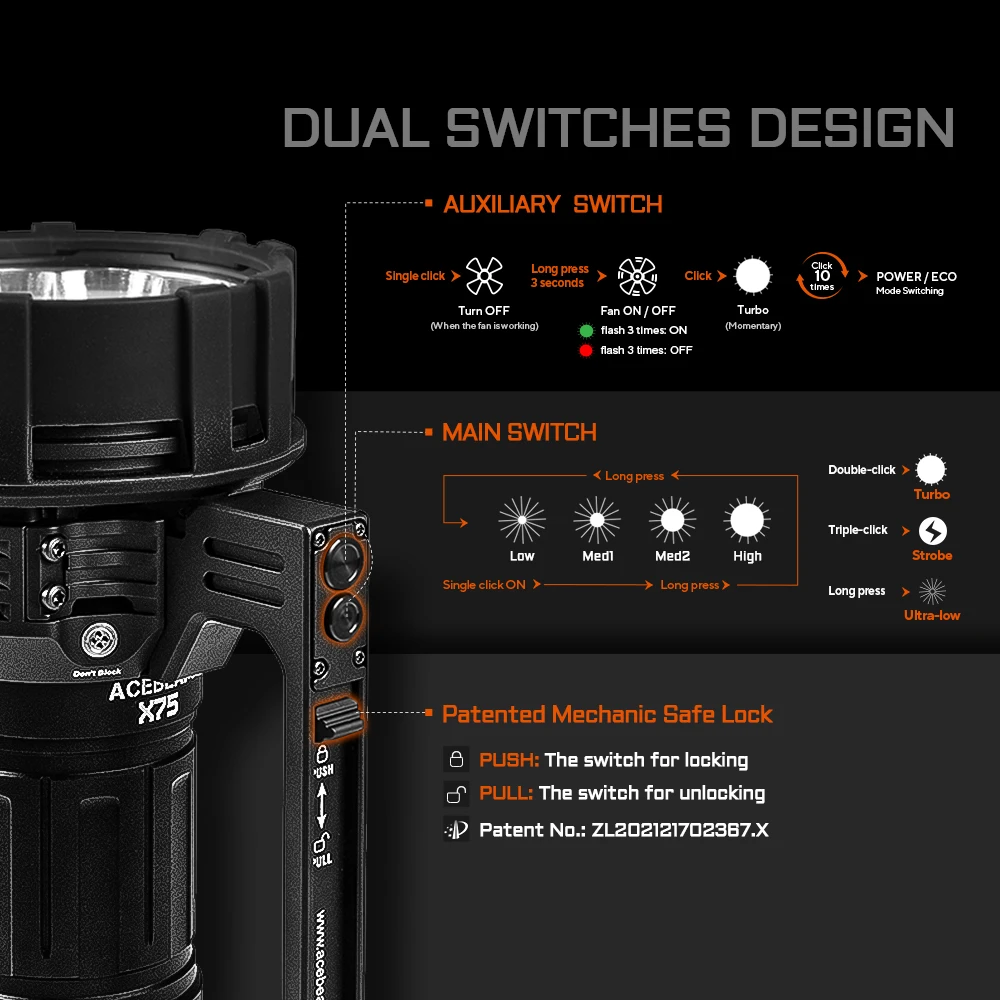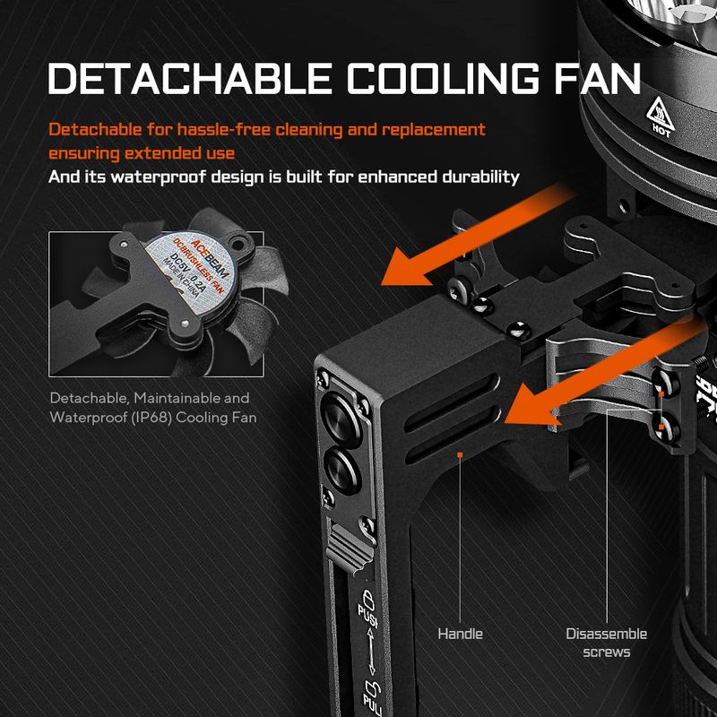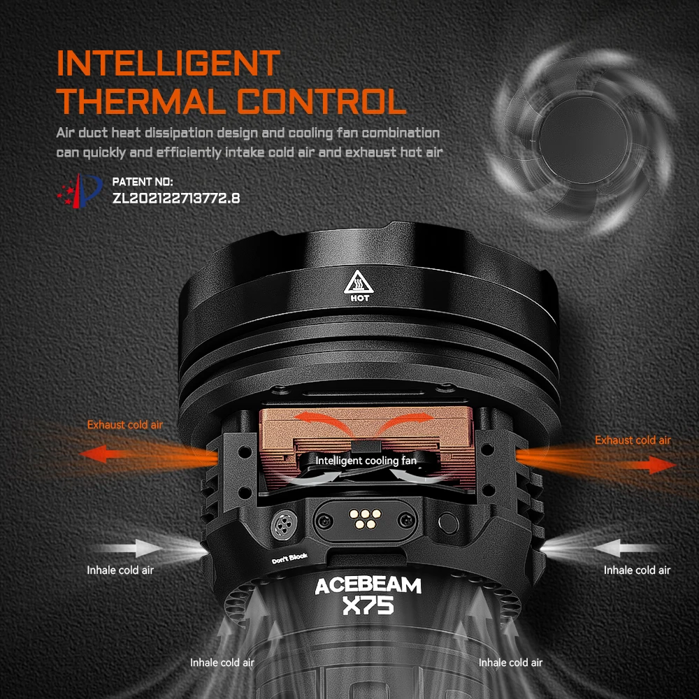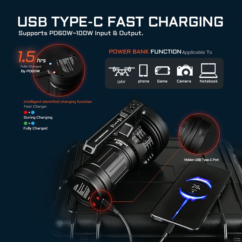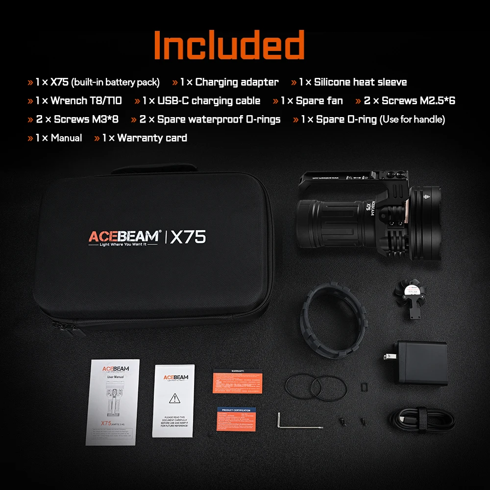 Built-in: ACEBEAM 14.4V/4250mAh Rechargeable Li-ion battery pack ( 4 x 21700 Li-ion Batteries)