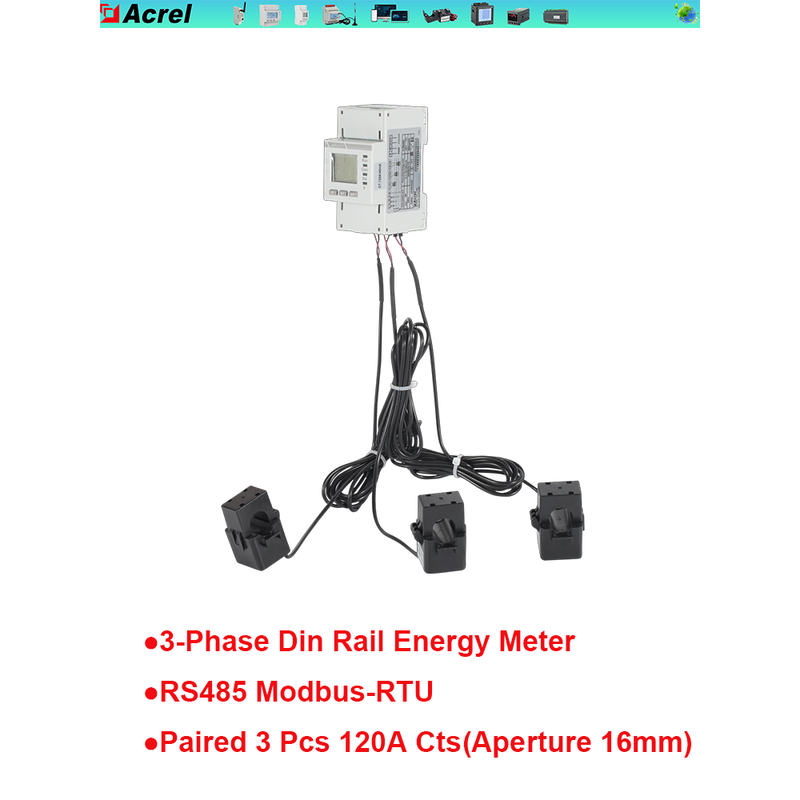 ADL400N Three-phase DIN Rail Energy Meter and 3 Pcs Cts