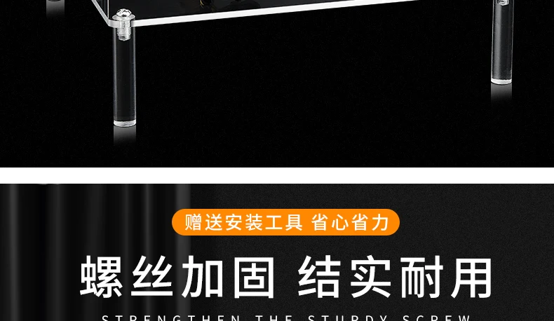 Simply screw in acrylic feet for easy assembly. Please remove the protective film before use.