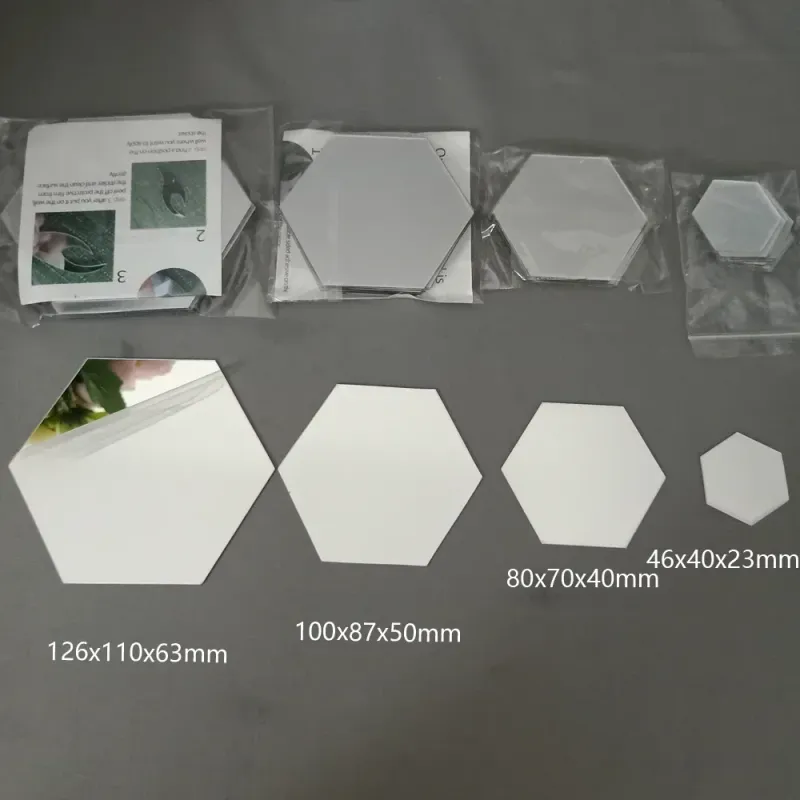 Acrylic Hexagon Mirror Wall Stickers Self Adhesive Removable Livingroom