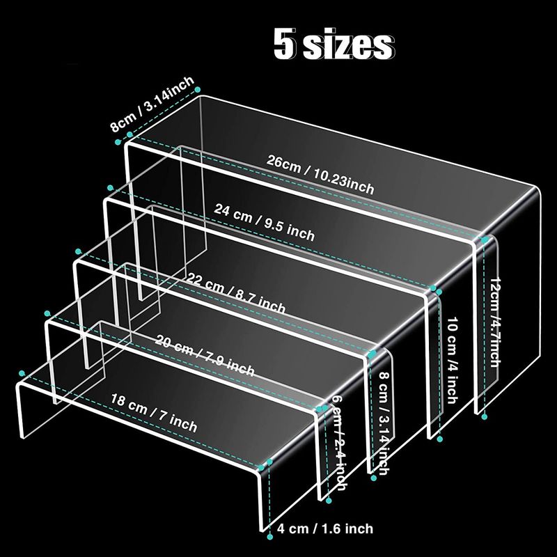 Acrylic Riser,Rectangular Acrylic Display Stand Shelf Clear Display Risers for Decor,Cake,Funko Pop,Retail Shoe Showcase Shelves