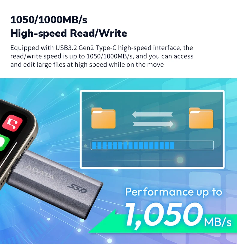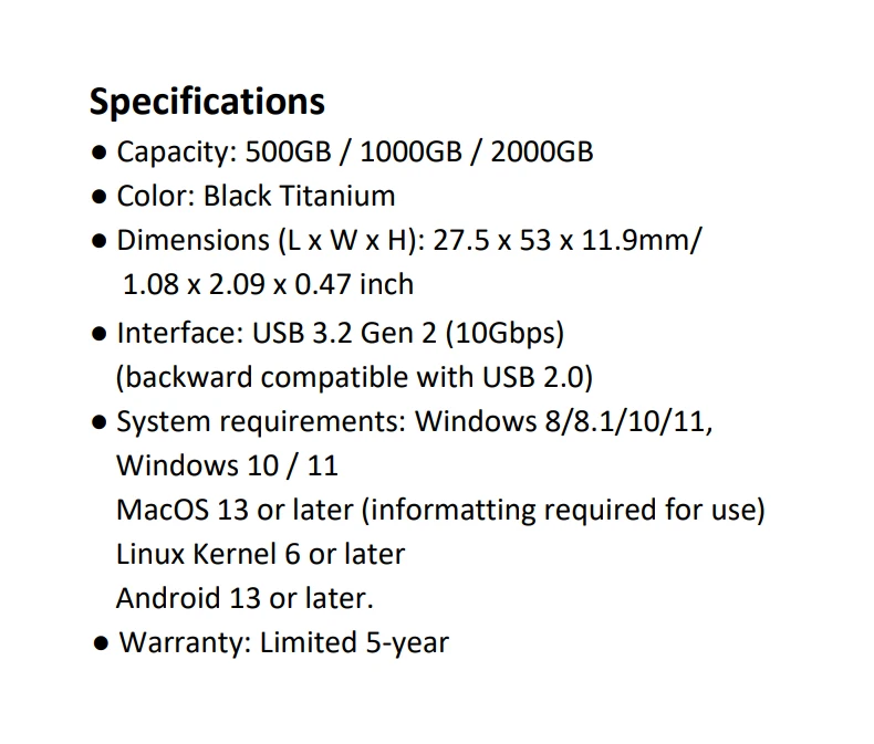 ● Interface: USB 3.2 Gen 2 (10Gbps) (backward compatible with USB 2.0)