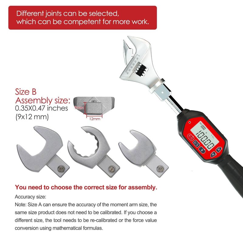 Adjustable 3-100 Nm Digital Torque Wrench Spanner Head Electronic Jaw Open End Torque with Buzzer & LED, Calibrated