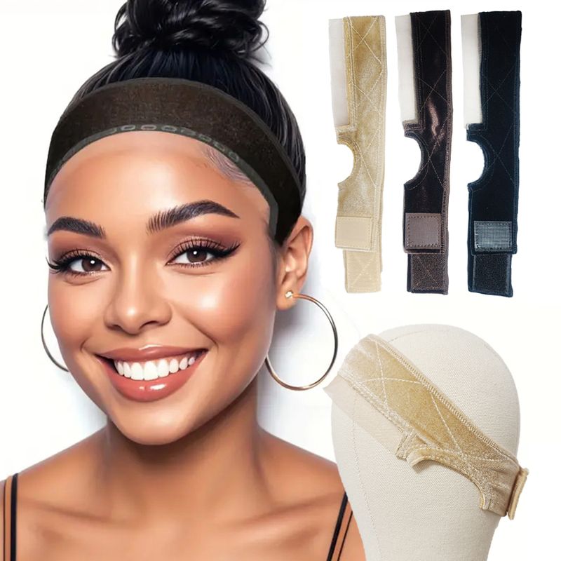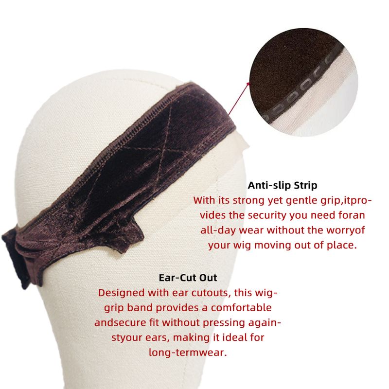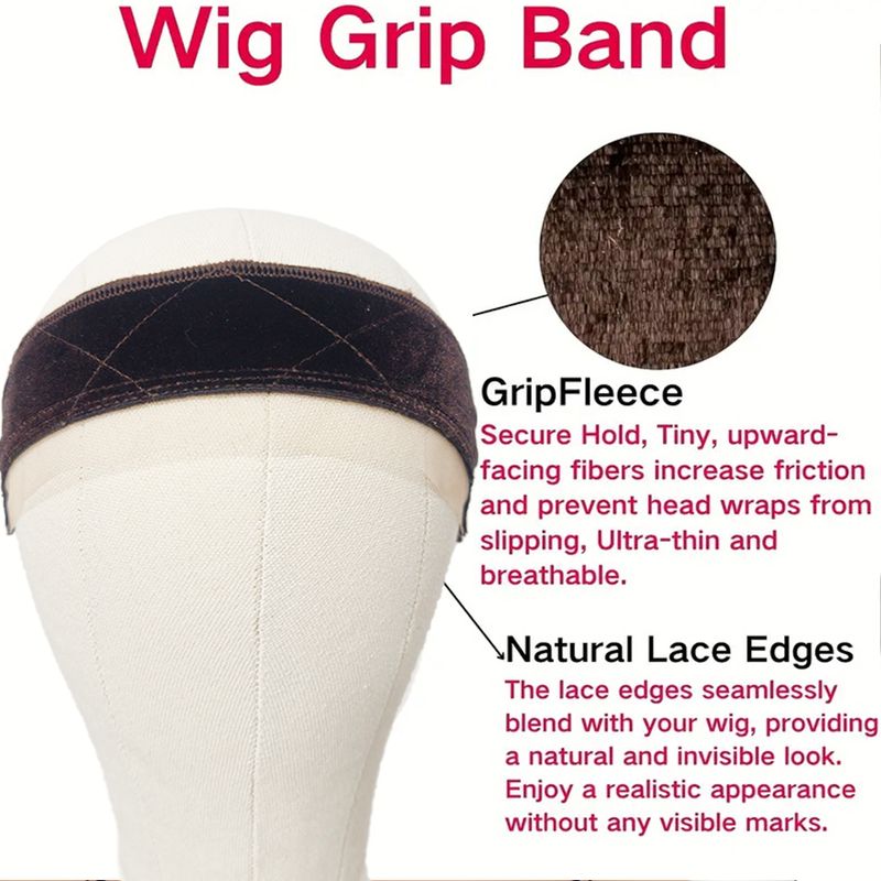 Adjustable Non-Slip Wig Band with Ear-Cutouts Natural Lace Edge Comfortable Velcro off Band for Secure Wig Placement