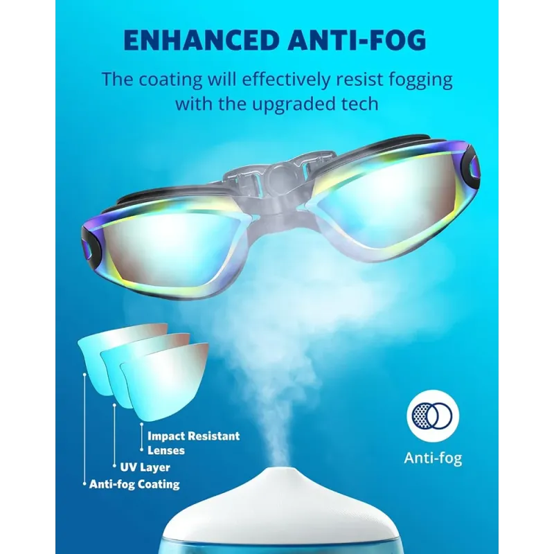Adjustable Silicone Swimming Goggles Anti-fog UV Protection No Leaking Mirrored Swim Eyewear Glasses for Adult Men Women Youth