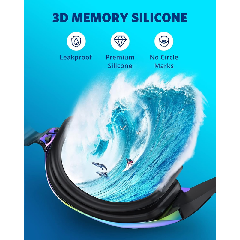 02 - Ergonomically designed 3D three-dimensional structure sealing ring, seamlessly connected with the curved surface lens, truly fitting the eyes, without water leakage and without pressing the eyes.