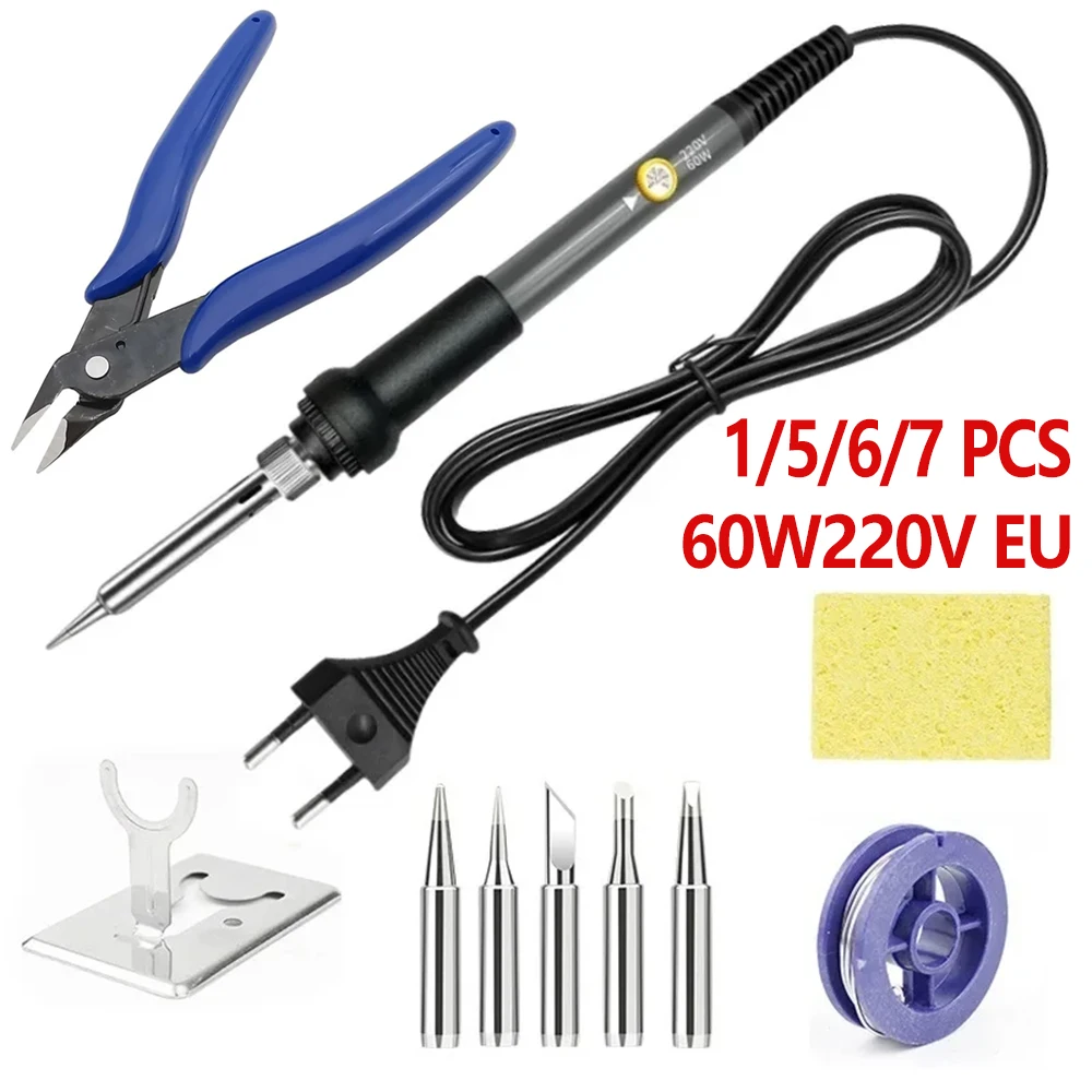 1/5/6/7pcs EU Adjustable Temperature Electric Soldering Iron 60W 220V Electric Soldering Iron Welding Solder Repair Tool