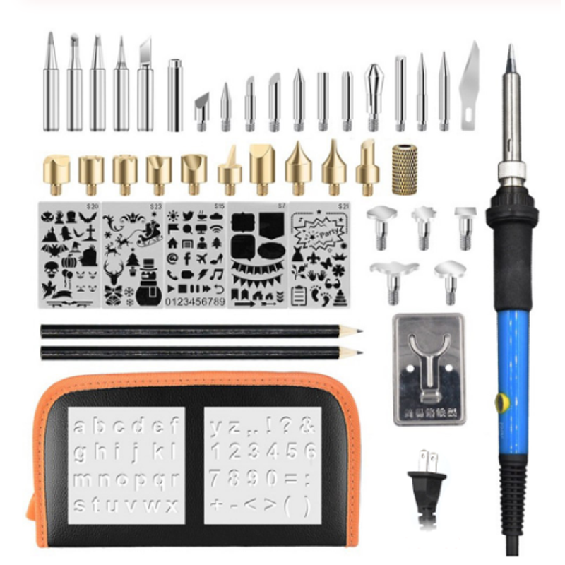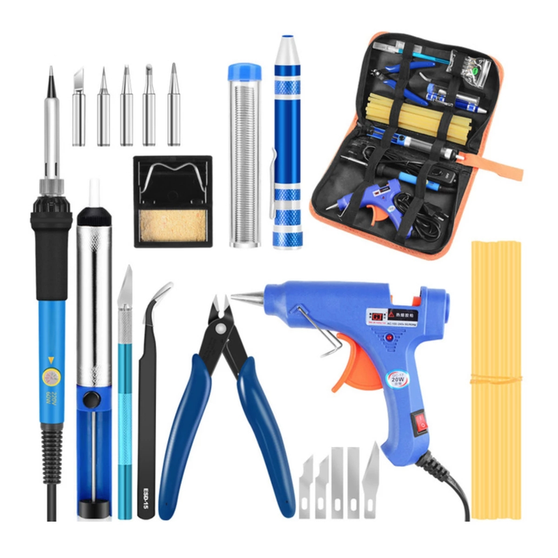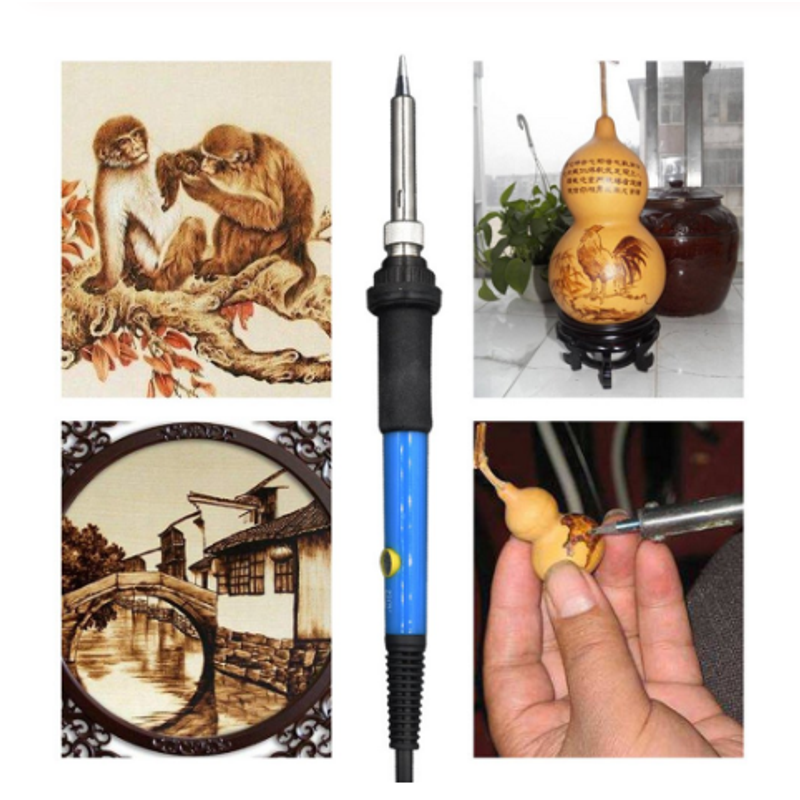 Adjustable temperature soldering iron set Engraving hot flower soldering iron soldering tool Blue US