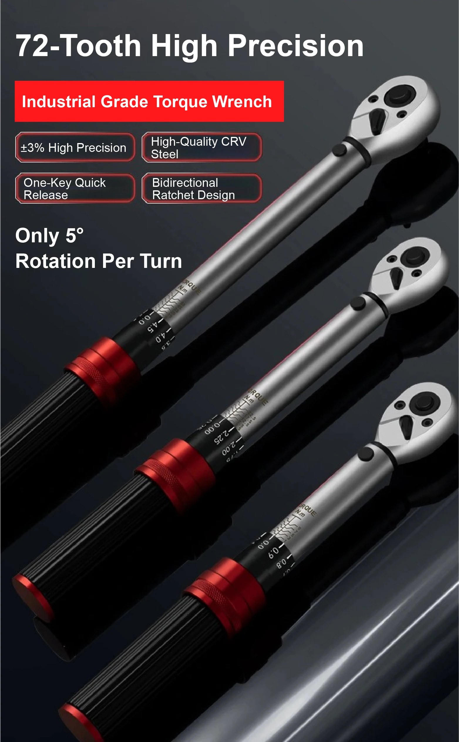 72-Tooth Industrial-Grade Torque Wrench