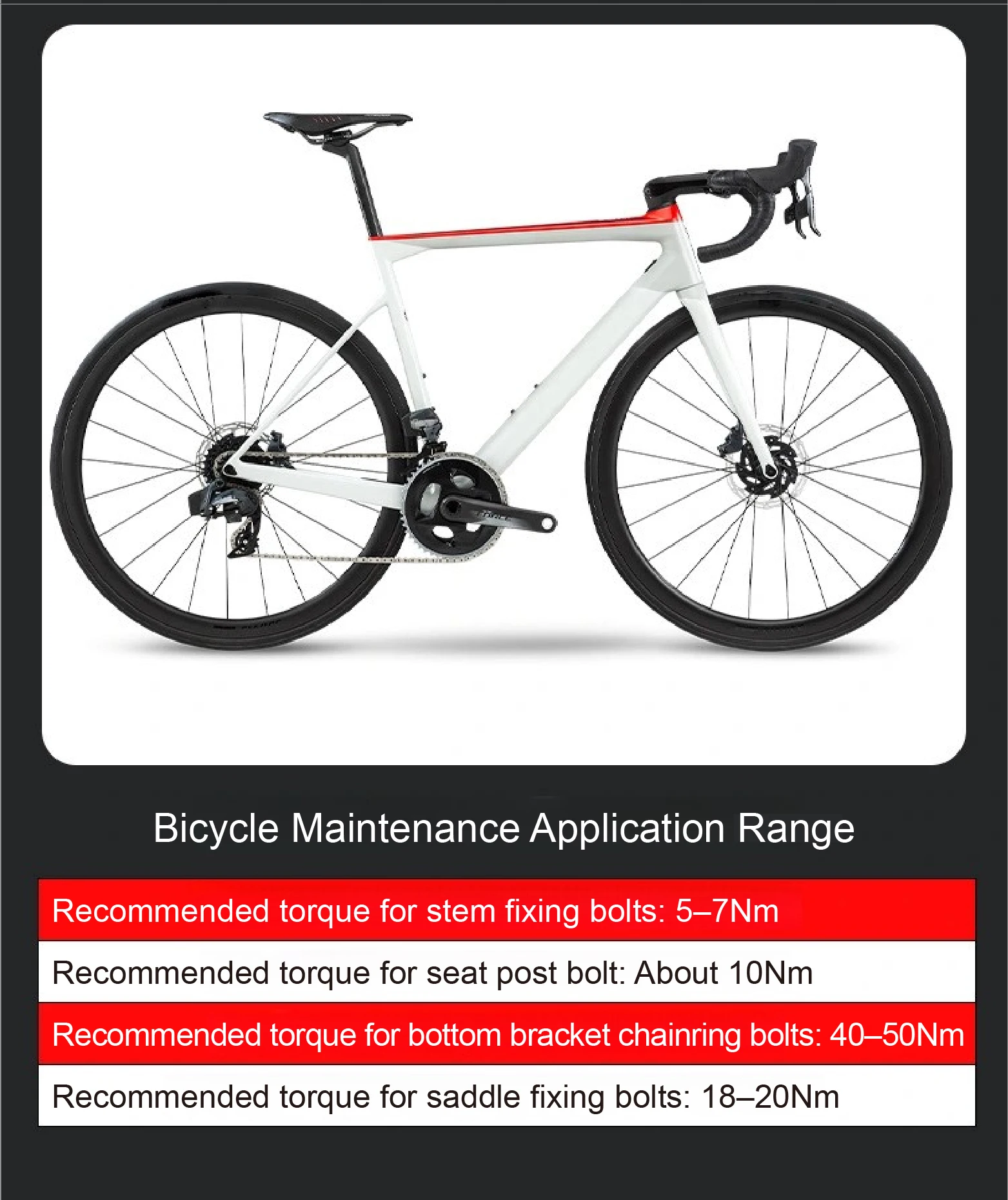 A2: Absolutely. Ideal for brake handle bolts (5–7 N.m), seat post bolts (18–20 N.m), and bottom bracket bolts (40–50 N.m).