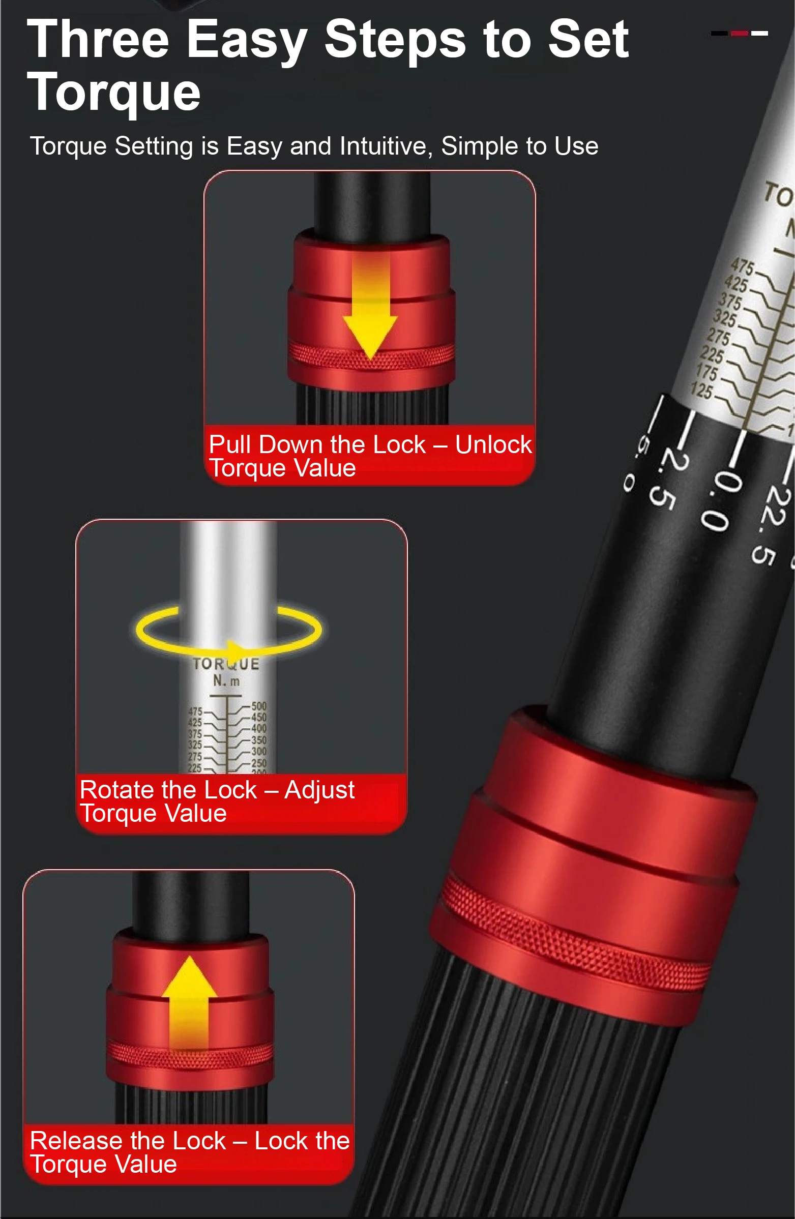 A3: Twist the handle to the desired torque value. The laser-engraved scale ensures accurate and easy adjustments.