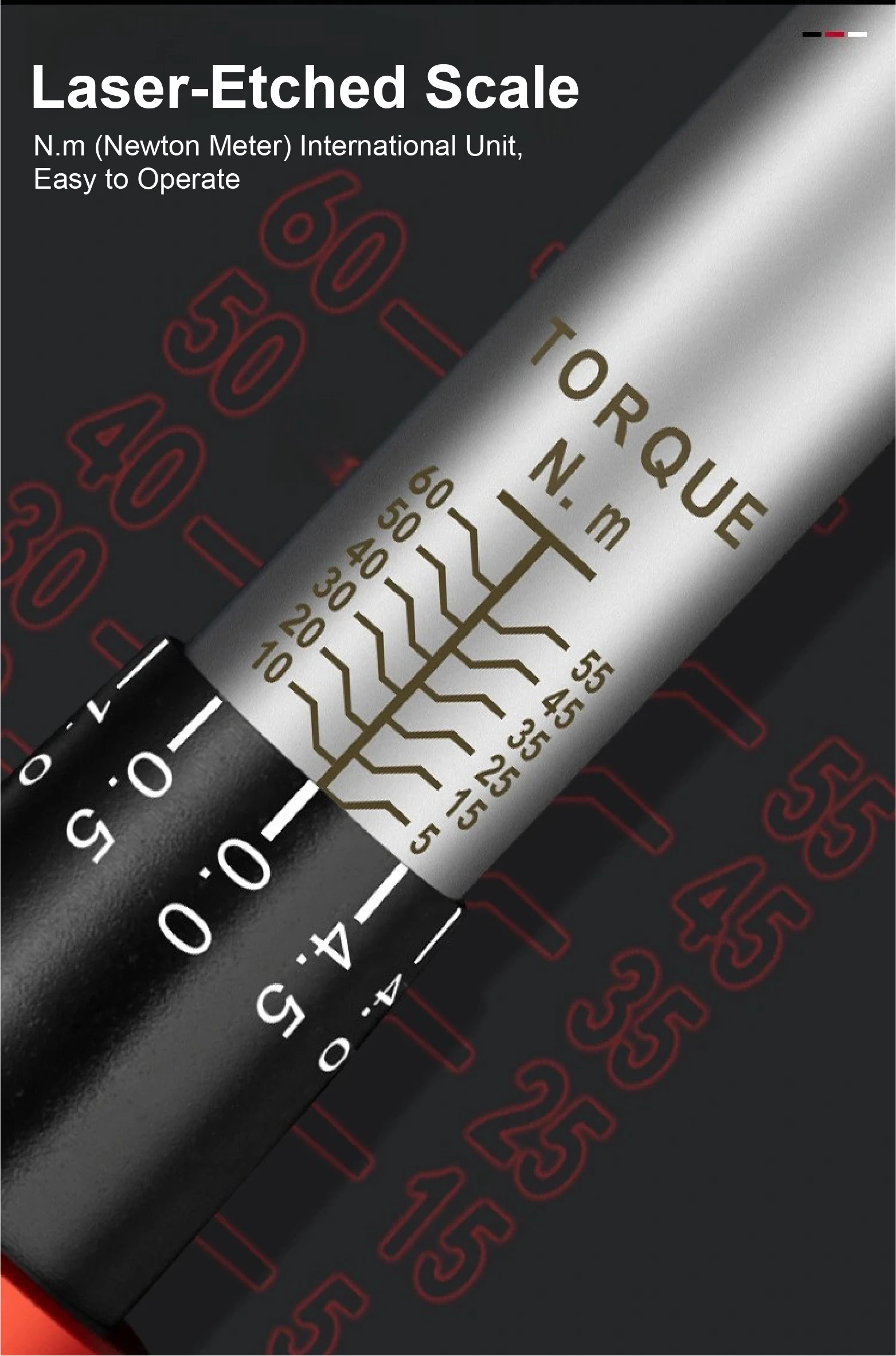 Laser-engraved torque scale (N.m)