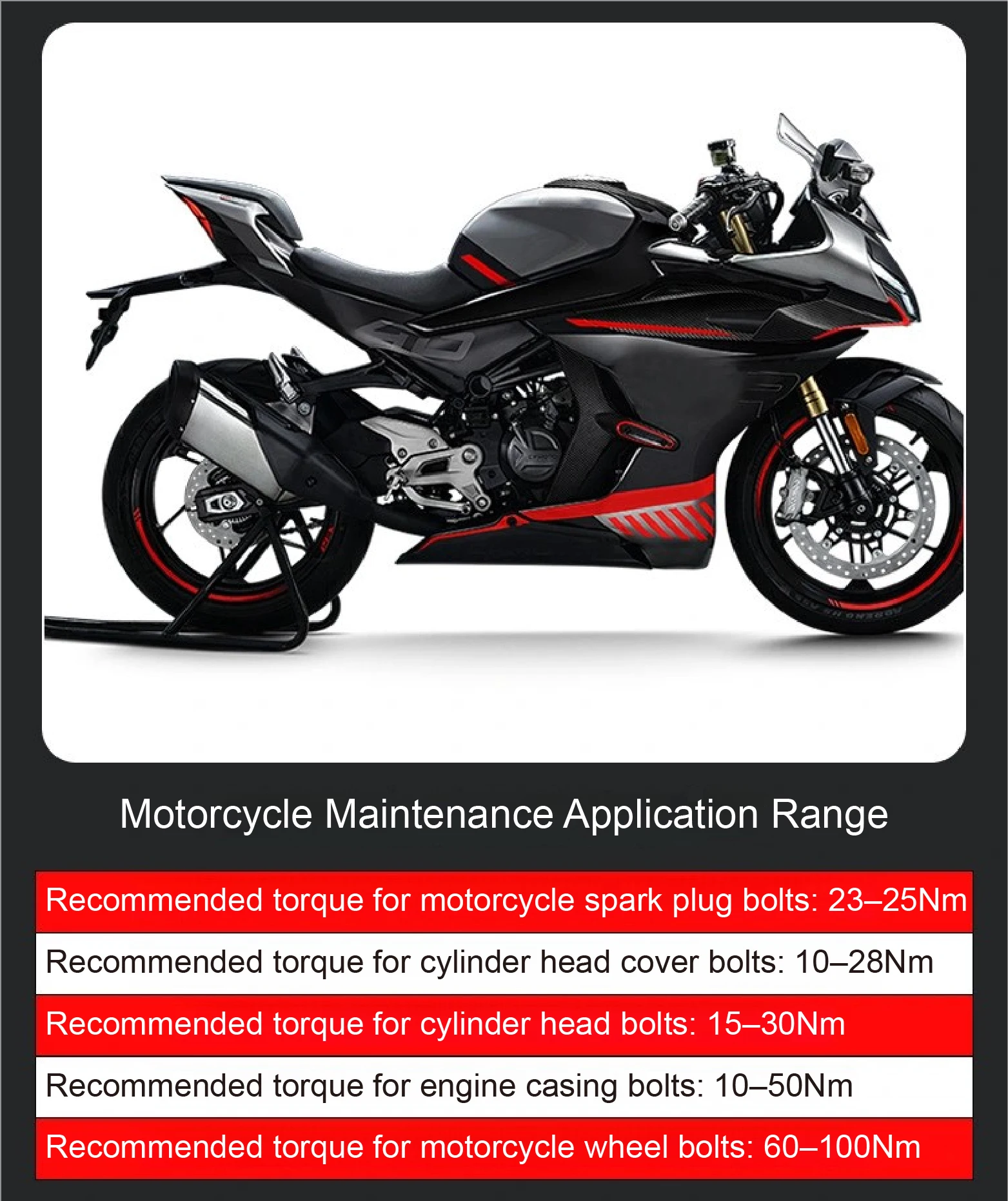 A1: Yes. Recommended torque is 23–28 N.m for cars and 23–25 N.m for motorcycles.