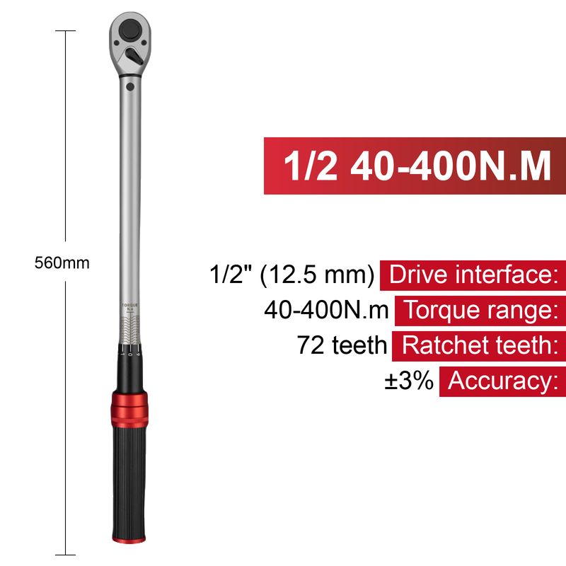 1/2" | 40–400 | 31.3–295.2 | ±3% | 560mm |