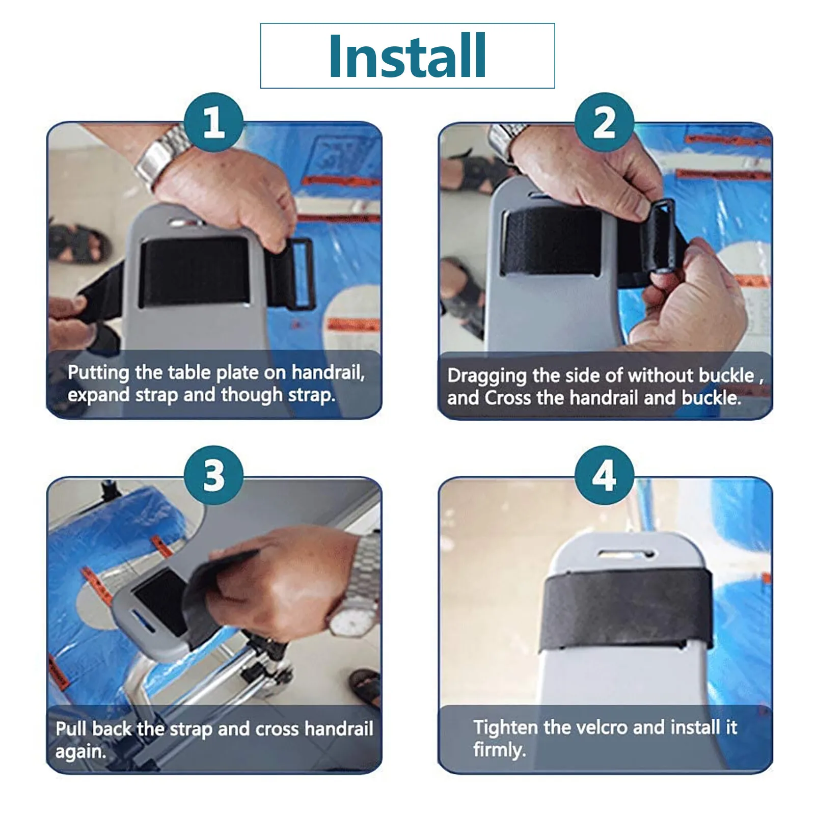 Adjustable Hook and Loop Tapes: They support adjustment to fix the table tray to the wheelchair and ensure user safety, while also enabling simple installation and disassembly for convenient use.