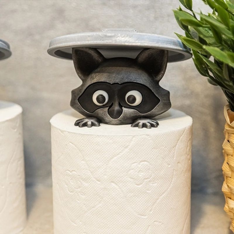 Adorable 3D Printed Raccoon Toilet Roll Paper Holder Plastic Playful Bathroom Decor Tissue Holder with Lid Decoration
