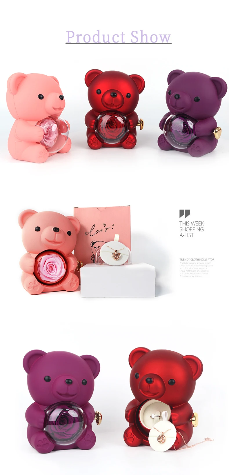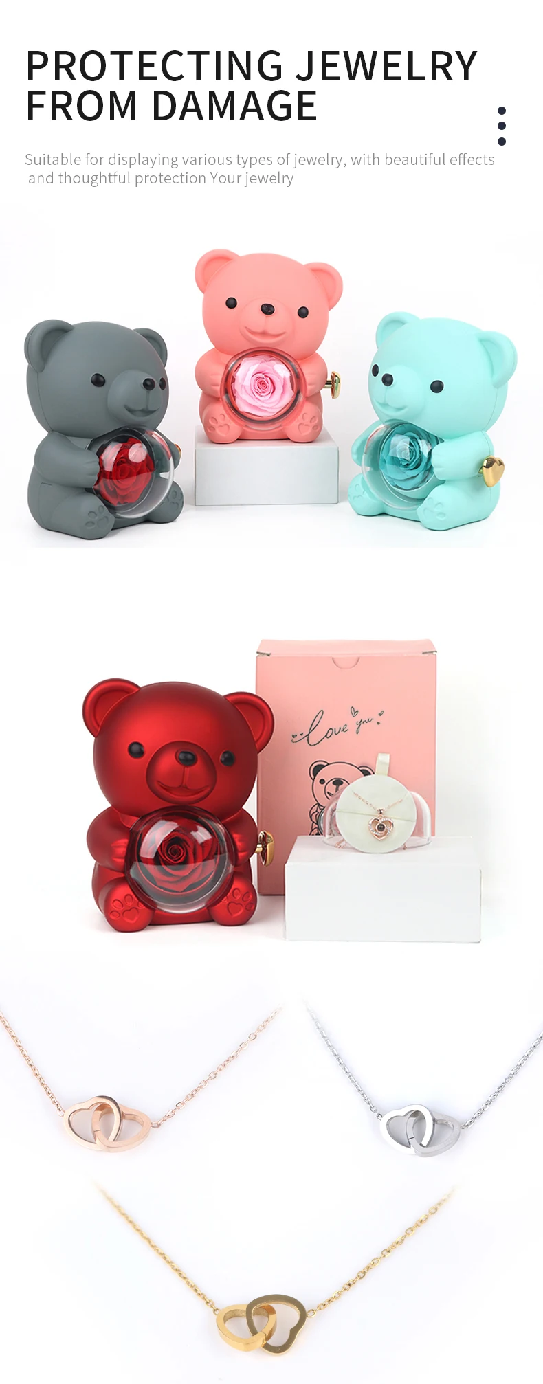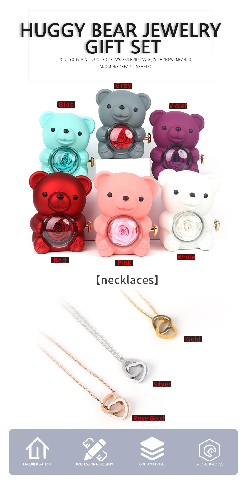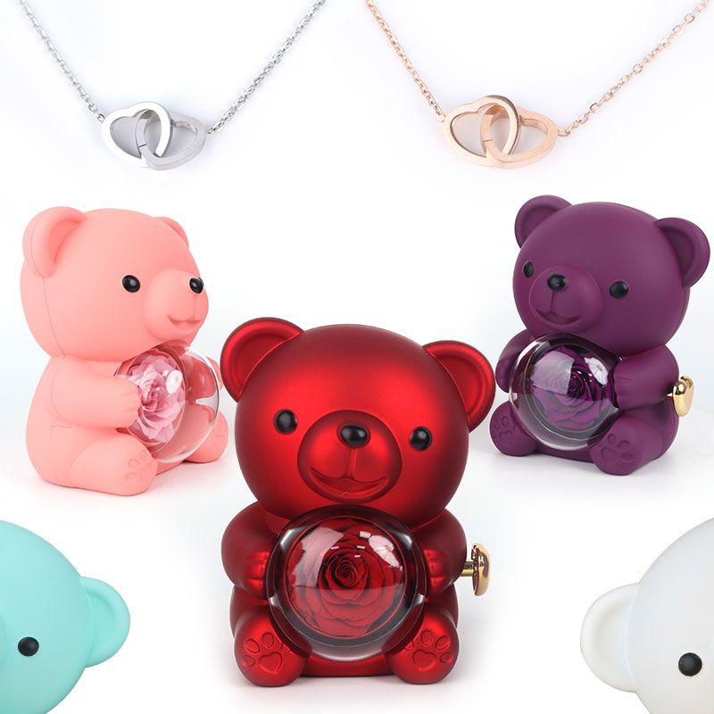 Adorable Bear Jewelry Box Set for Girls & Women Ideal Gift for Mother's Day Christmas & Valentine's with Necklace