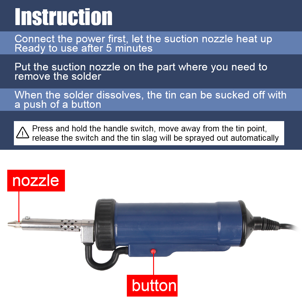 ADT03 Automatic Remove Pump with 3 Suction Nozzle Electric Solder Portable New Desoldering Machine Tin Sucker Vacuum Soldering