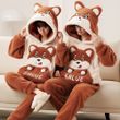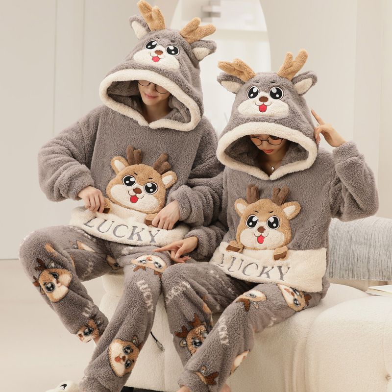 Adult Winter Thicken Sleepwear Pajamas Set Women Coral Fleece Pyjama Cartoon Deer Panda Hooded Homewear Loungewear Pijamas Suit